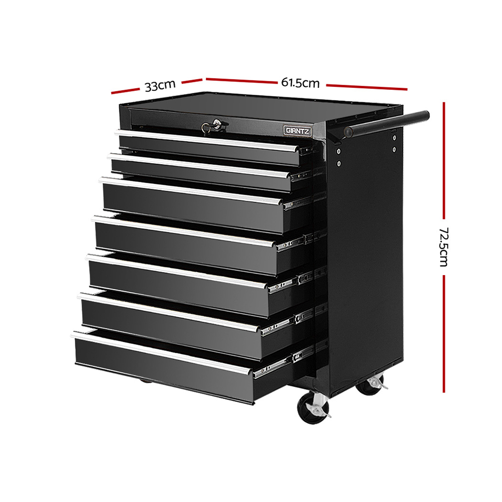 Giantz 7 Drawer Tool Box Cabinet Chest Trolley Storage Garage Toolbox Black