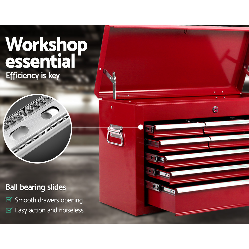 Giantz 9 Drawer Tool Box Cabinet Chest Toolbox Storage Garage Organiser Red