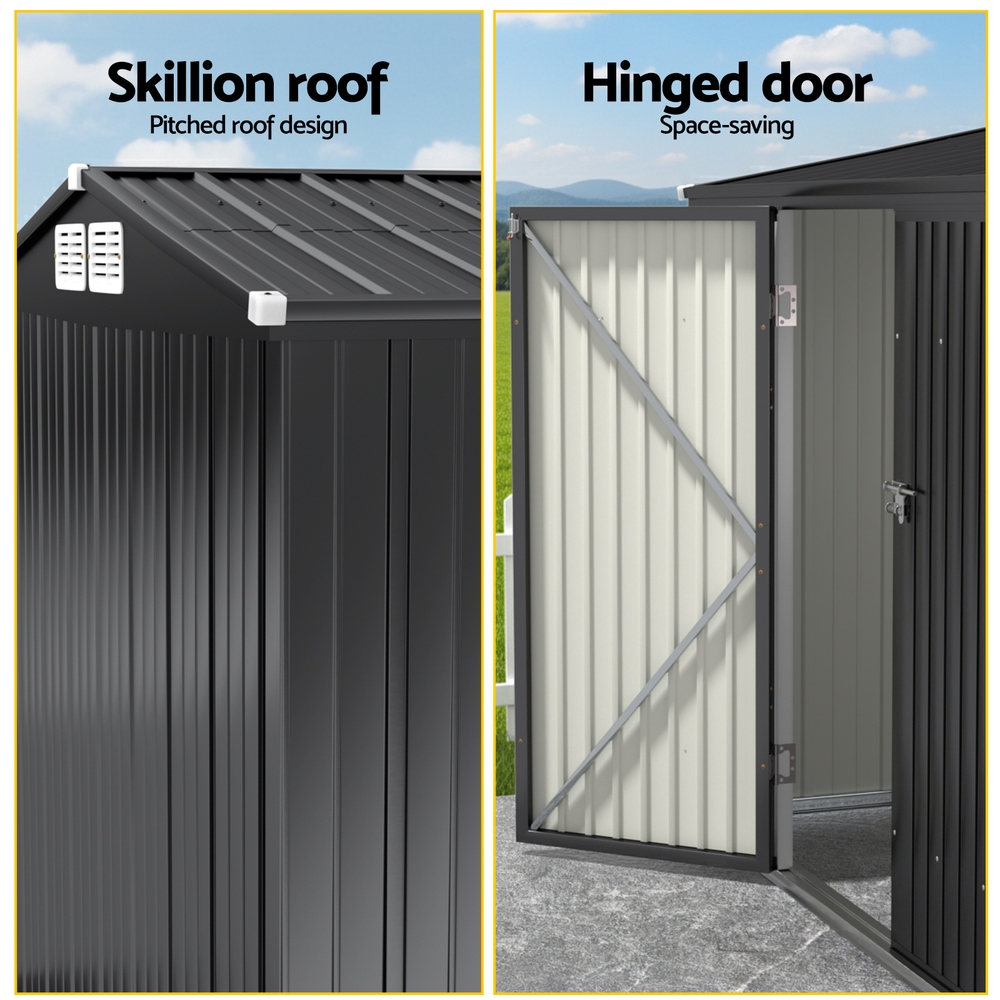 Keep your tools and gear secure with this robust Giantz storage shed, built to handle the Aussie climate. Made from corrosion-resistant galvanised steel and durable polypropylene (PP), it features a practical sloped roof to prevent water pooling during rainy seasons. The double hinge doors swing wide open for easy access to bulky items like mowers or bikes, while four integrated air vents reduce moisture buildup – perfect for humid coastal areas.No more maintenance worries: the zinc-coated steel frame (0.6mm thickness) and 0.25mm colour board panels resist rust and bushfire ash. Lockable doors add security for your valuables, and assembly is straightforward with pre-drilled parts. With its low-maintenance design and classic grey finish, this shed blends seamlessly into any backyard.