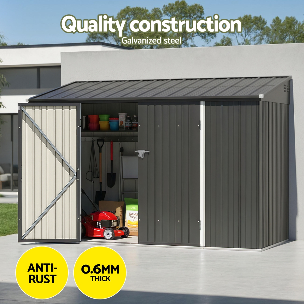 Engineered for the harsh climate, this Giantz shed features a robust galvanised steel frame (0.6mm) paired with durable colour-coated steel panels (0.25mm). The practical sloped roof efficiently sheds rainwater, while corrosion-resistant materials ensure maintenance-free durability against coastal humidity and inland extremes.Double full-length hinge doors provide wide access for bulky items like lawnmowers or bikes, complete with lockable door for secure storage of tools and equipment. Designed for straightforward assembly with pre-drilled components – no specialised skills needed. Generous interior space measures, offering reliable all-weather protection for your backyard essentials.
