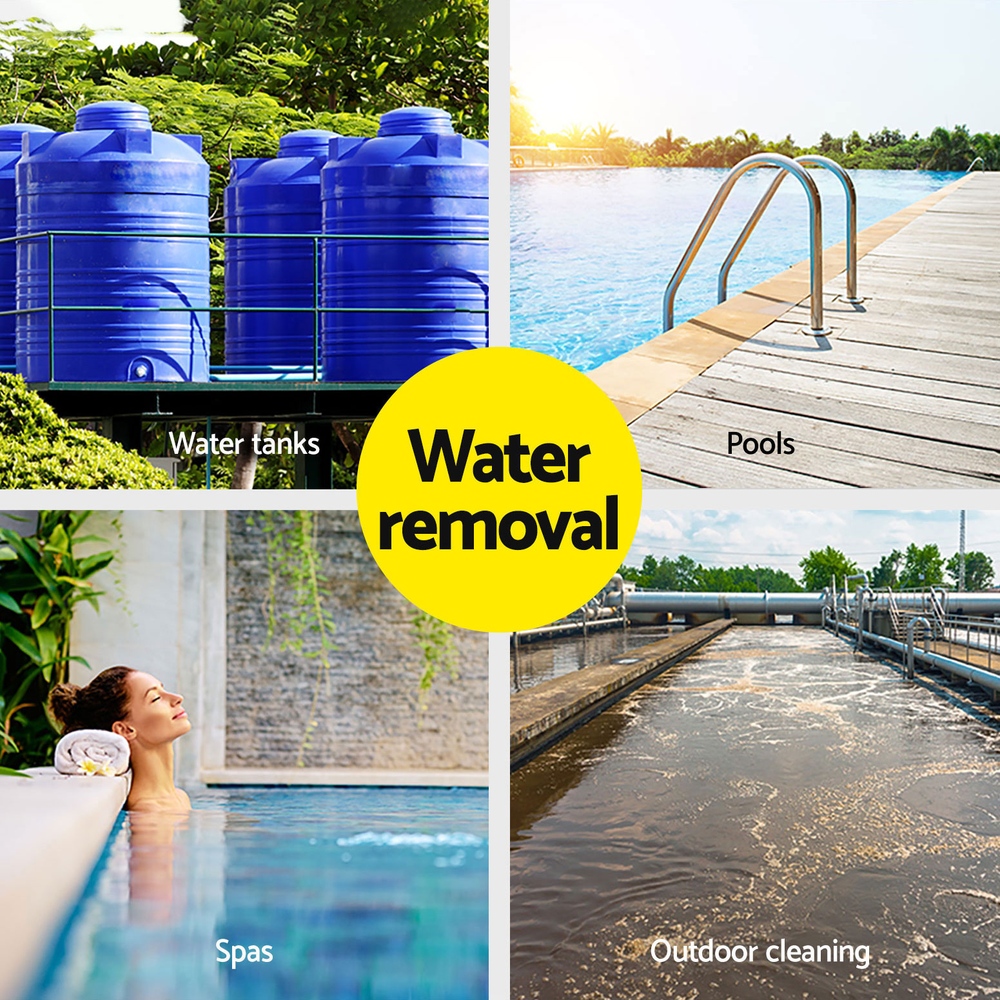 Empty pools, ponds, spas or flooded areas with a Giantz Submersible pump. Submersible pumps are perfect for a variety of situations, from setting up a home irrigation system to quickly draining ponds, tanks, pools or flooded areas. The motor runs quietly and efficiently, and it can be submerged to a depth of seven metres. The pump can operate automatically between 9-18cm of water and it an expel up to 13000 litres of water per hour. It is designed to work with dirty water, with a maximum solid passage of 16mm, so you can work in areas with muddy, sandy, or otherwise contaminated water. Finally, work anywhere thanks to its portable design that includes a 10m cable with a standard AU plug.