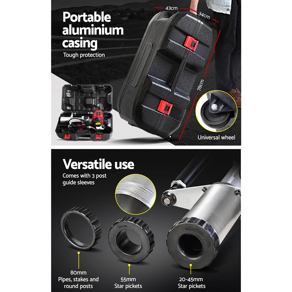 Giantz Petrol Post Driver 38CC 4-Stroke Rammer Pile Star Picket Fence Hole Drive Red
