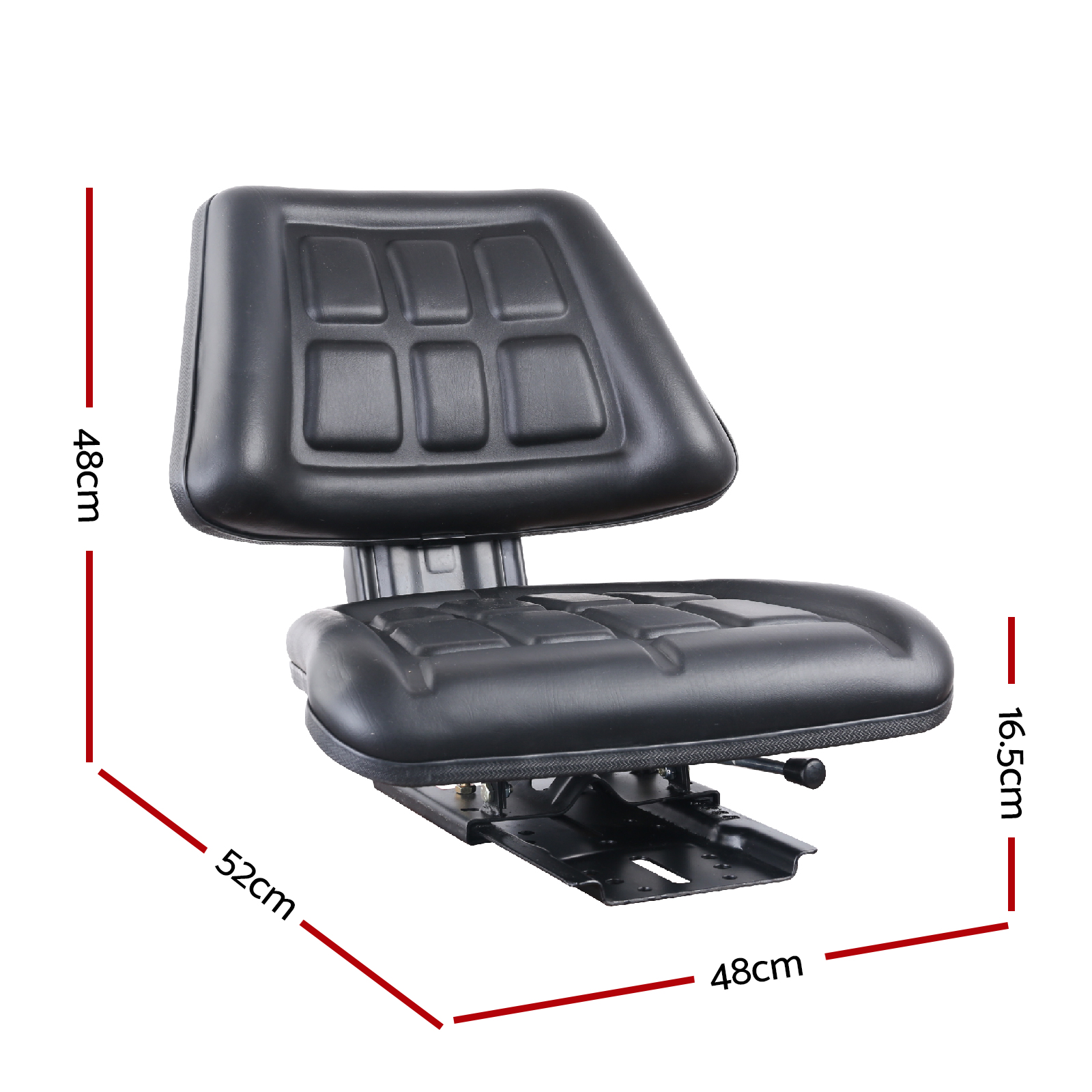 Our Tractor Seat comes with all the necessary features that make it a better working experience for you: fore and aft sliding track adjustment of up to 150mm, and thick padded seat upholstered in high quality black PU leather for extra durability. Everything is designed to take into account your requirements for a seat that matches your work environment perfectly.