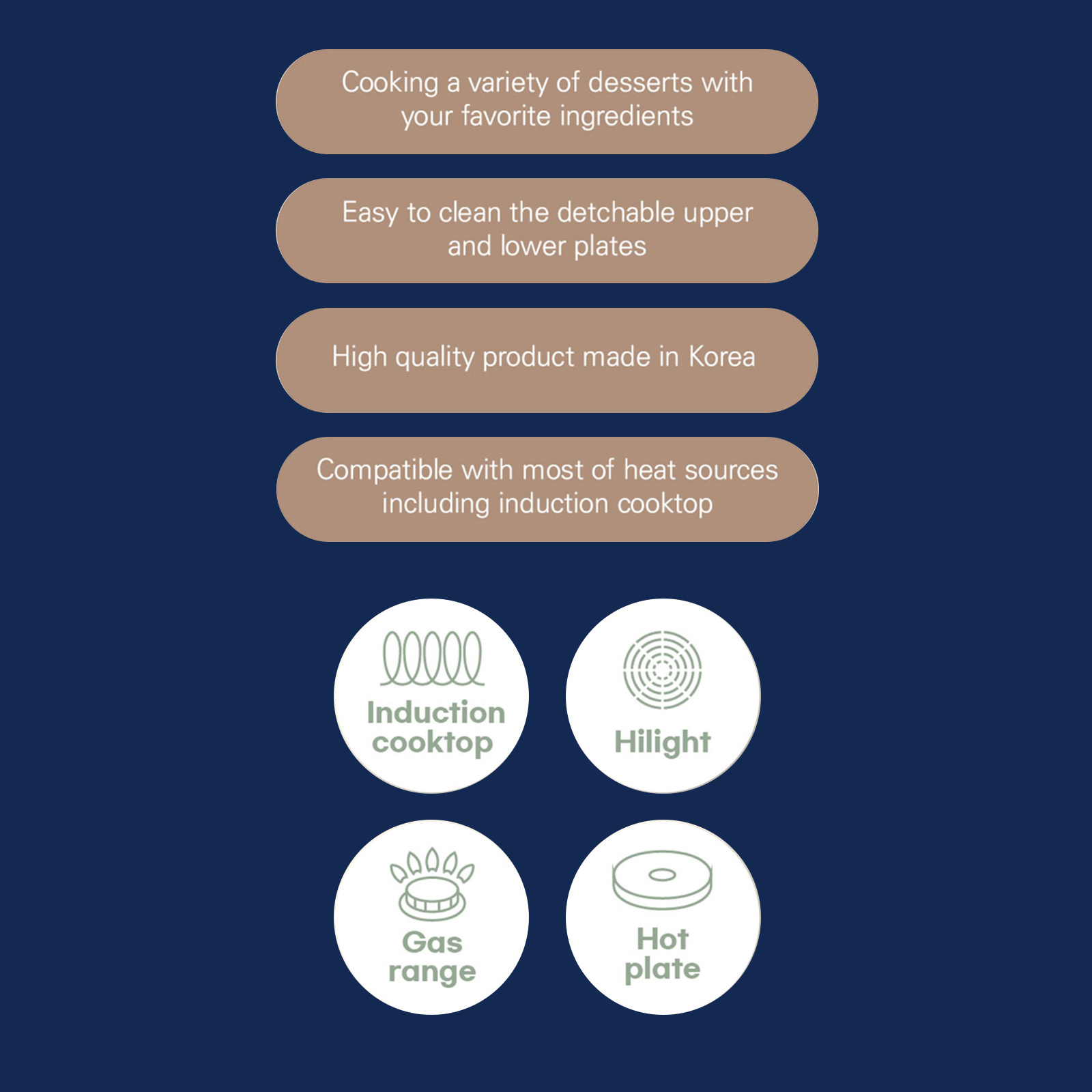 - Available for most heat sources: gas, halogen, IH, Induction.