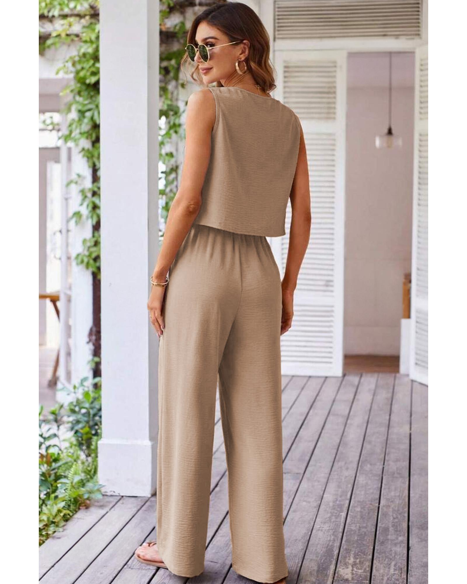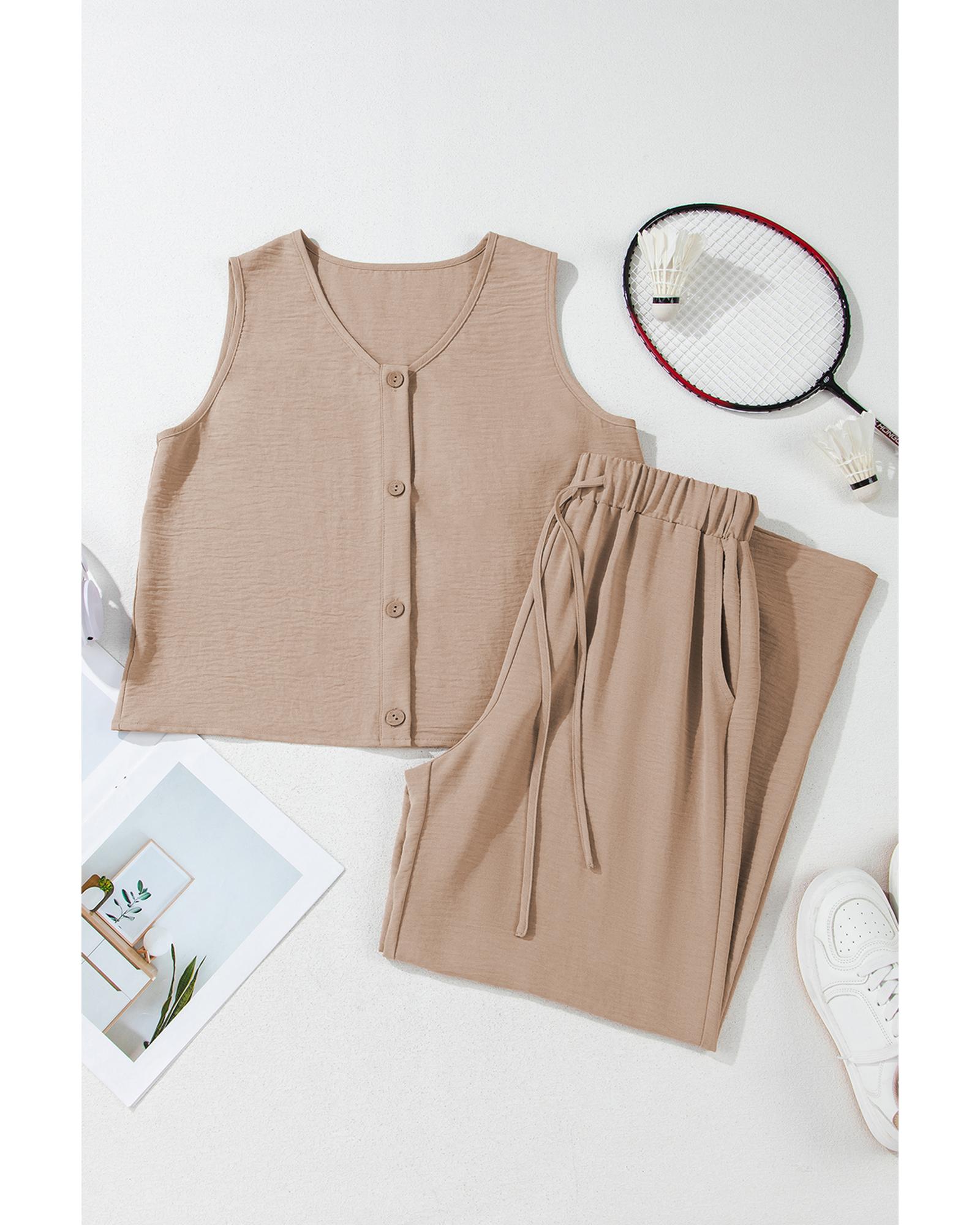 - Stylish buttoned vest and wide leg casual pants coordinate set