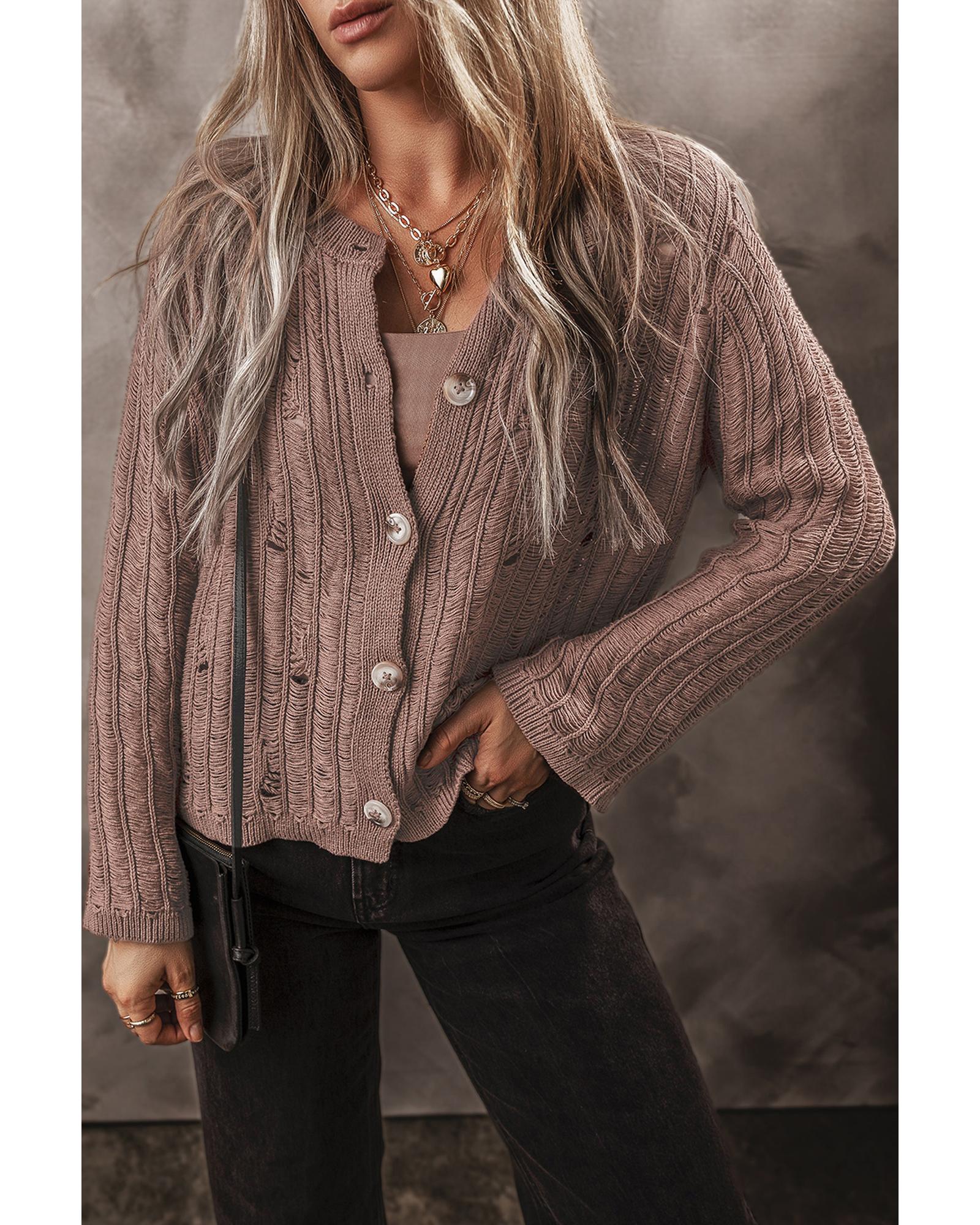 Goat Cut Out Textured Knit Buttoned Cardigan – M