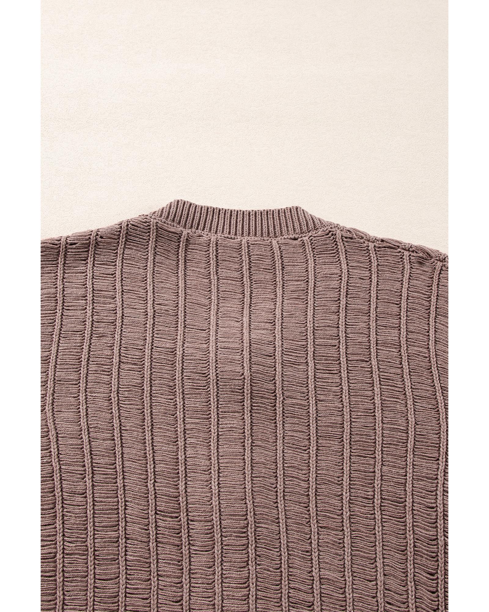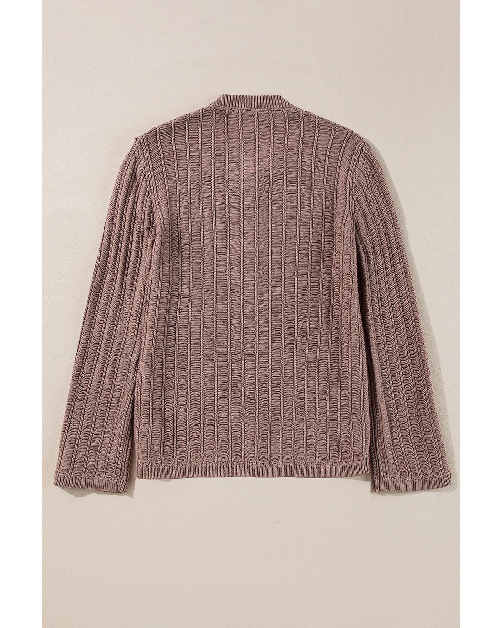 Apricot Casual Hollowed Knit Dolman Sleeve Cardigan - S