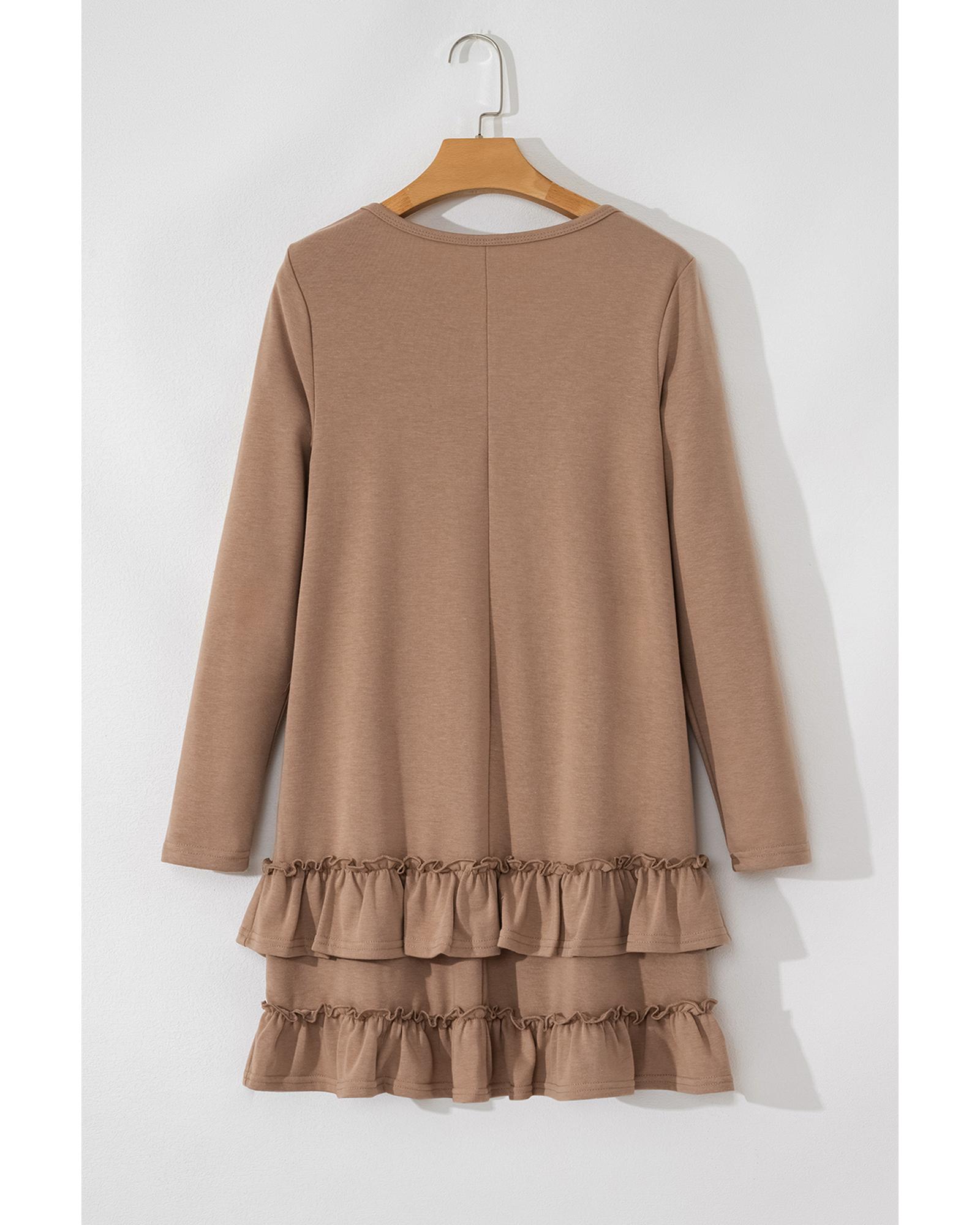 Goat Scoop Neck Tiered Ruffled Hem Long Sleeve Mini Dress – M
