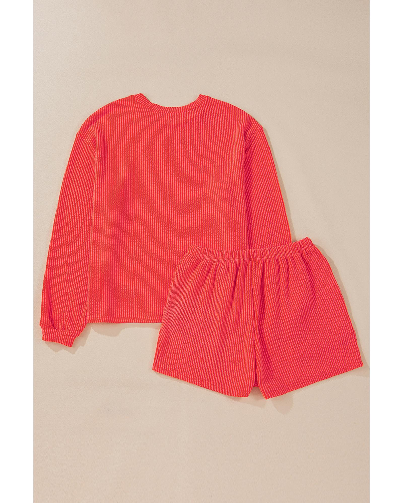 Gold Flame Heart Shape Graphic Corded Pullover and Shorts Outfit – M