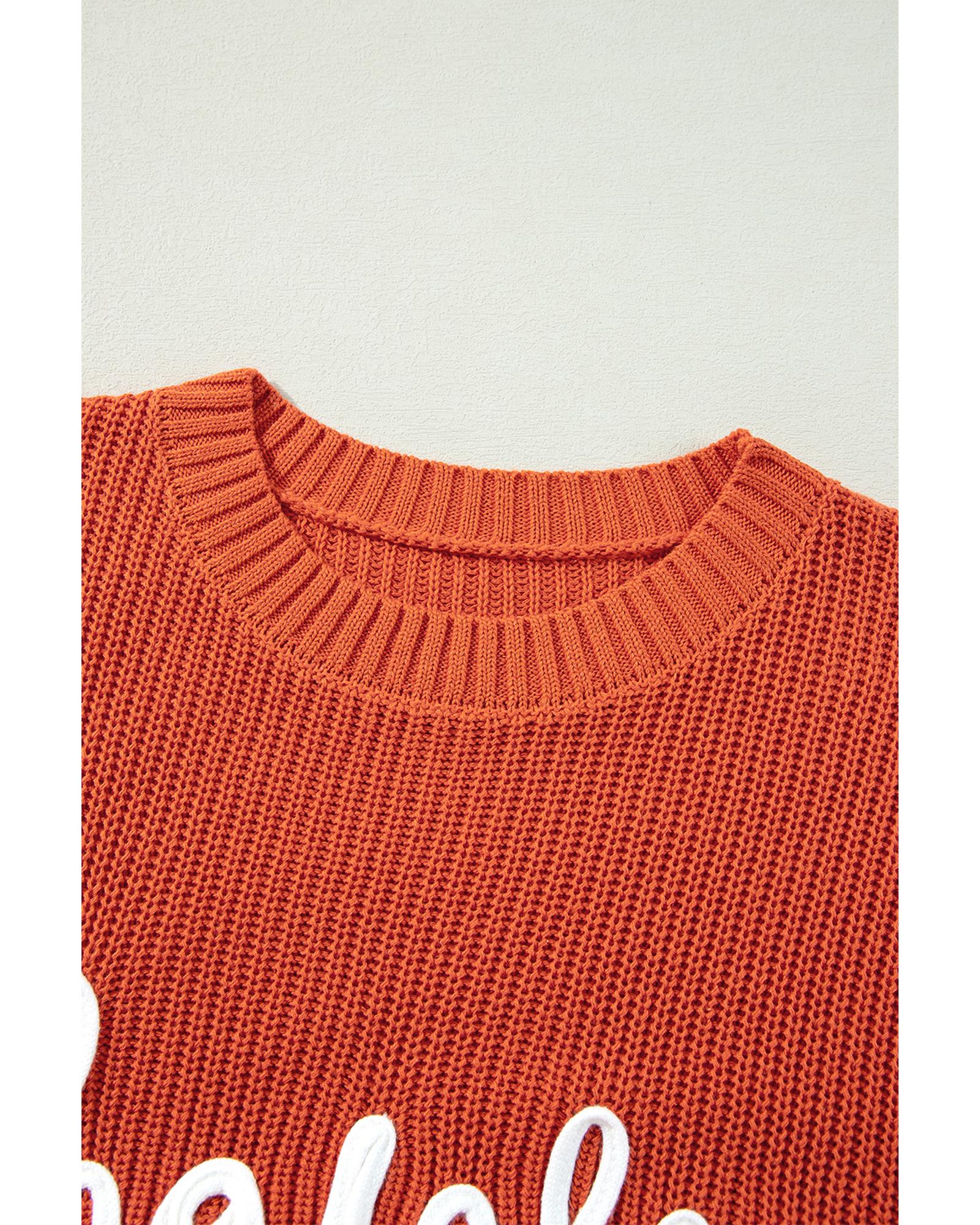 Gold Flame Thanks Giving Letter Graphic Crew Neck Sweater – XL