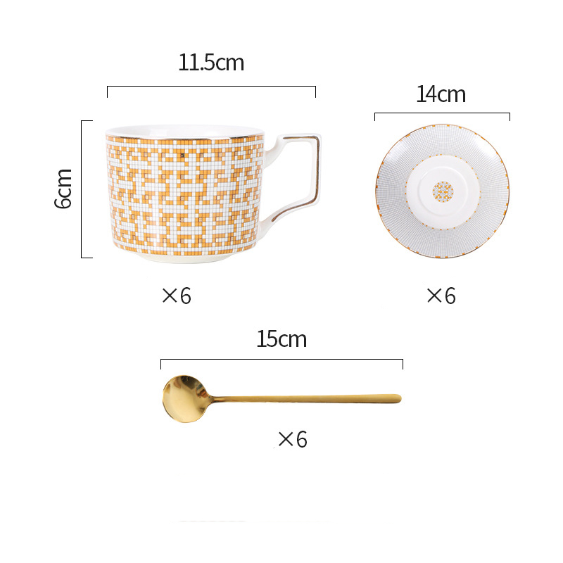 Gold Mosaic Porcelain Bone China Coffee Cup Saucer Sets Tea Cup Sets For Home Office Gift