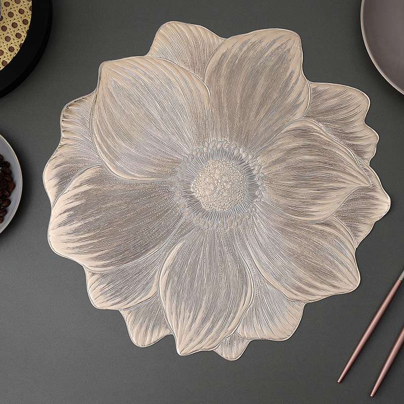 Enhance your dining table with these stylish and functional PVC Gold Foil Bottom Heat-Resistant Table Mats. Perfect for western cuisine, these elegant placemats feature a gold foil finish and are designed to resist heat, water, and slipping, ensuring a safe and beautiful dining experience. Ideal for both casual and formal settings, this set of 8 placemats will complement any table setting while keeping your table protected.