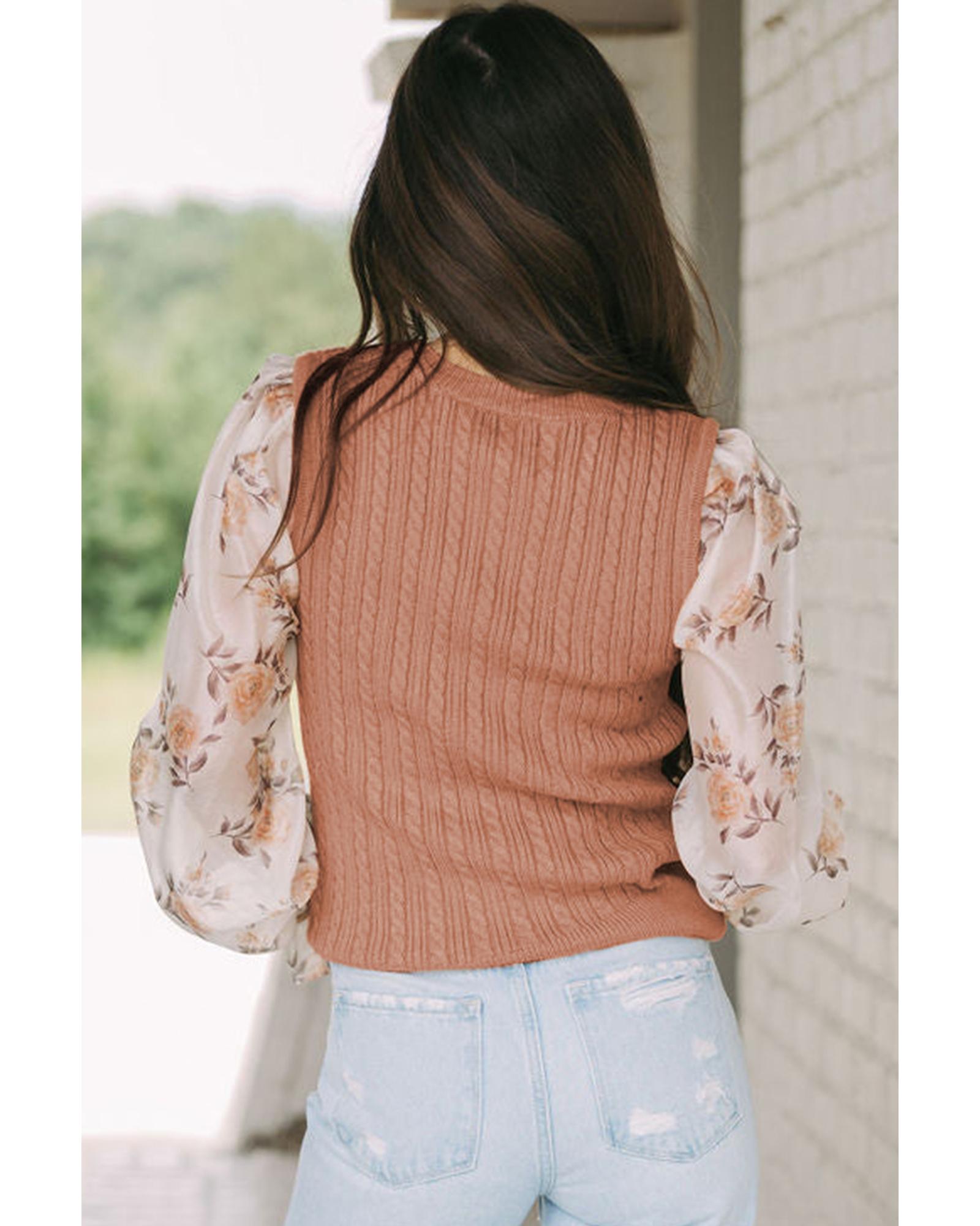 Golden Fleece Floral Patchwork Ruffled Cuff Cable Knit Sweater – XL