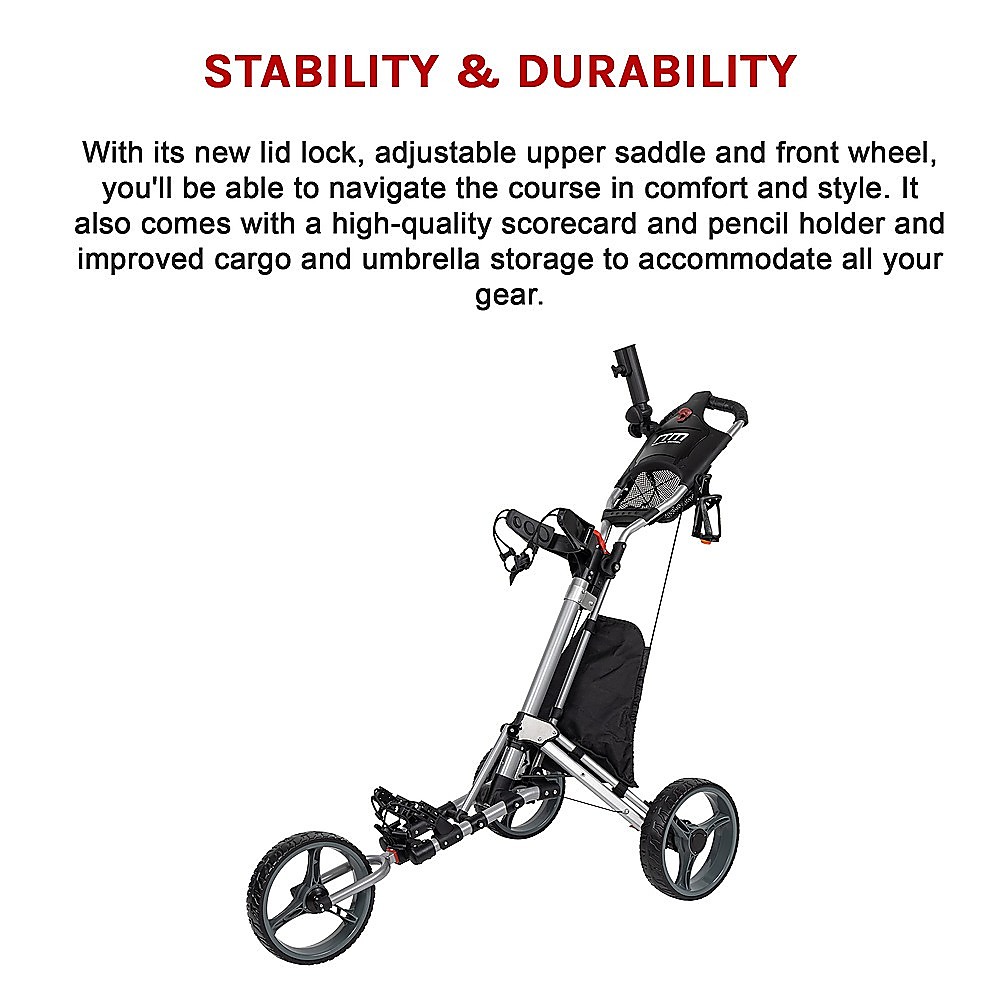 - Improved design: Our cart's large console features space for your scorecard, pencil, ball and tee holders, as well as an ample storage net