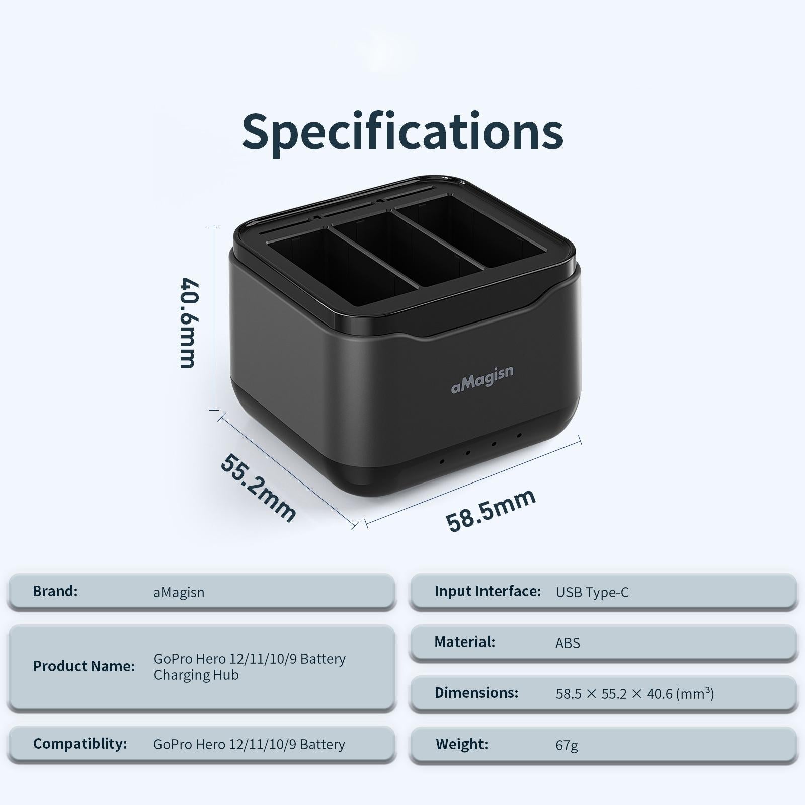 • 1 x Amagisn Battery Charger Charging Seat for Gopro Hero12/11/10/9