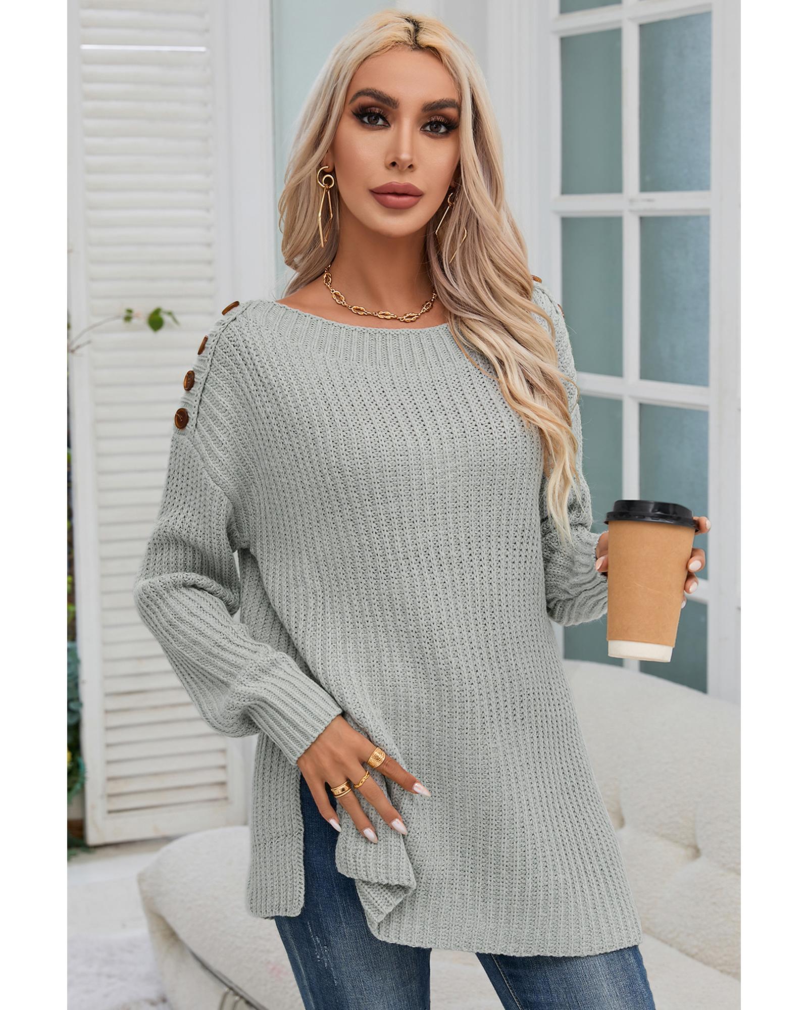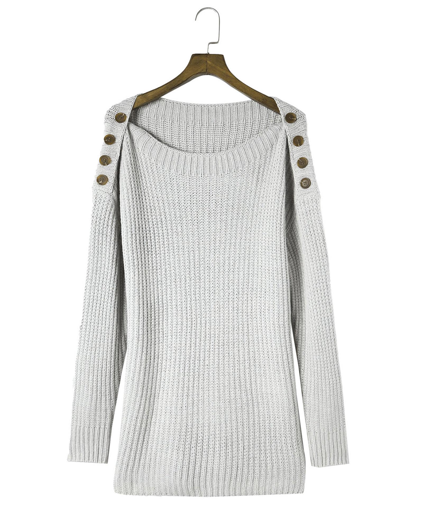 Gray Buttoned Drop Shoulder Oversized Sweater – M