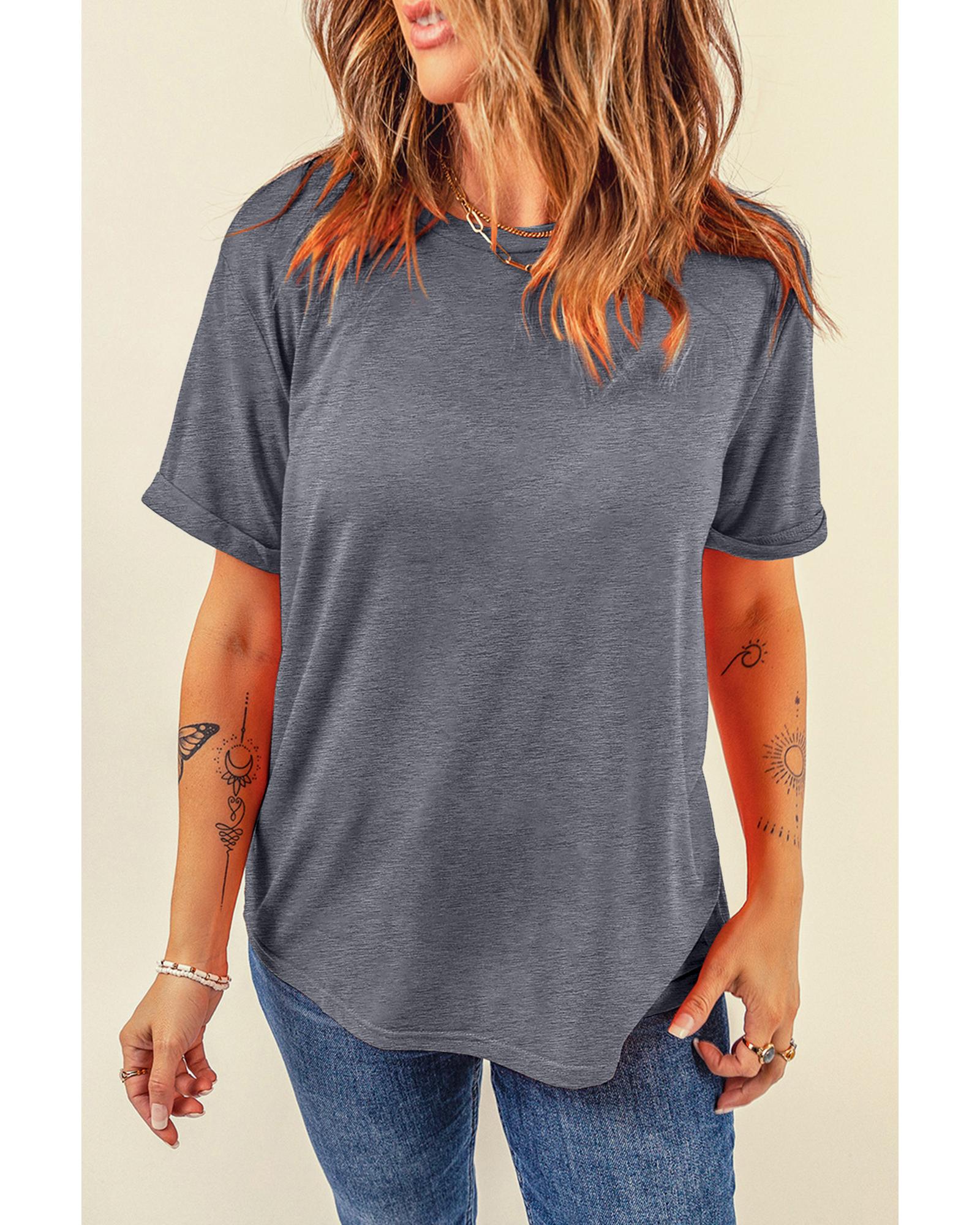 Gray Casual Plain Crew Neck Tee – XL