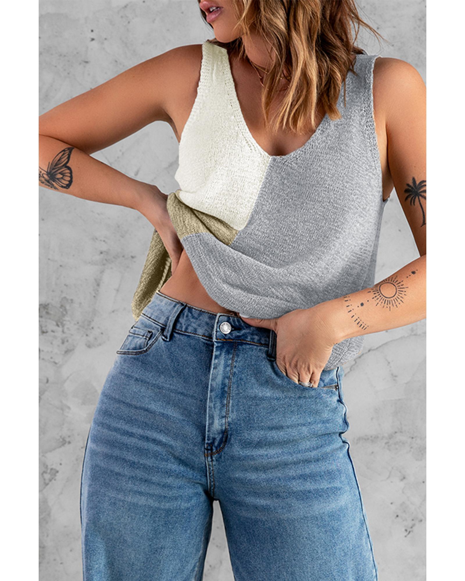 Gray Color Block Knitted Tank Top – 2XL