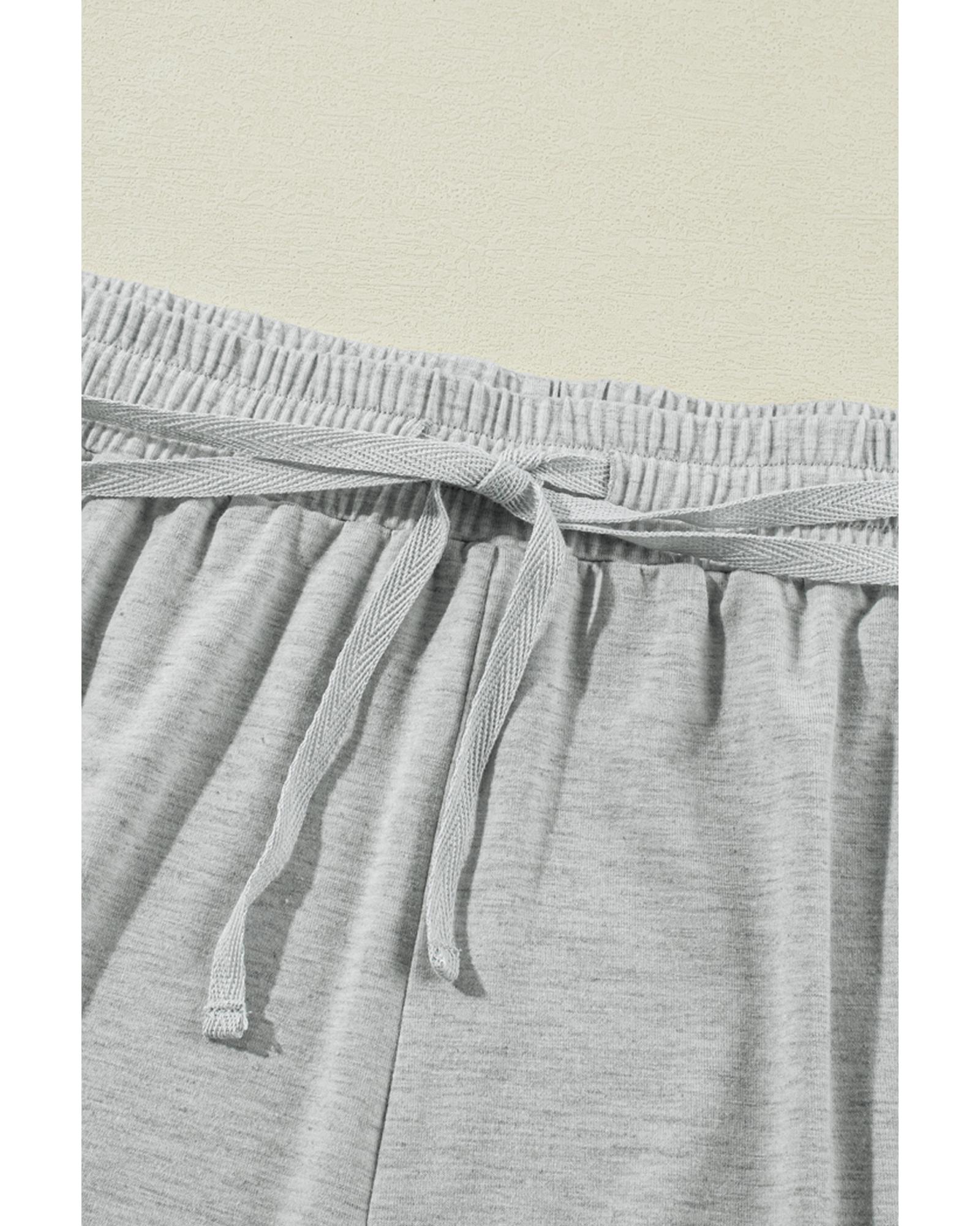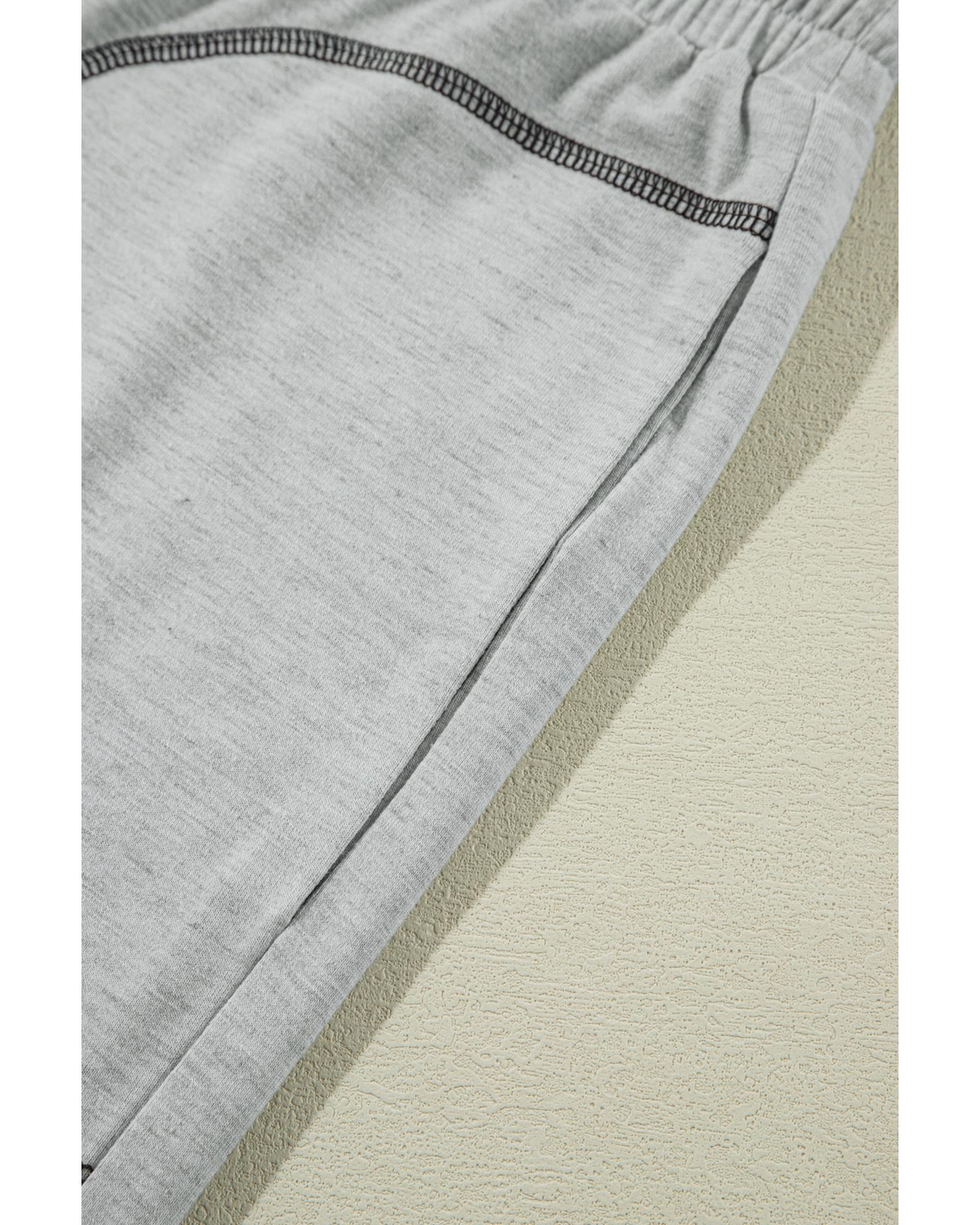 Gray Contrast Stitching Cuffed Sleeve Plus Shorts Set – 1X