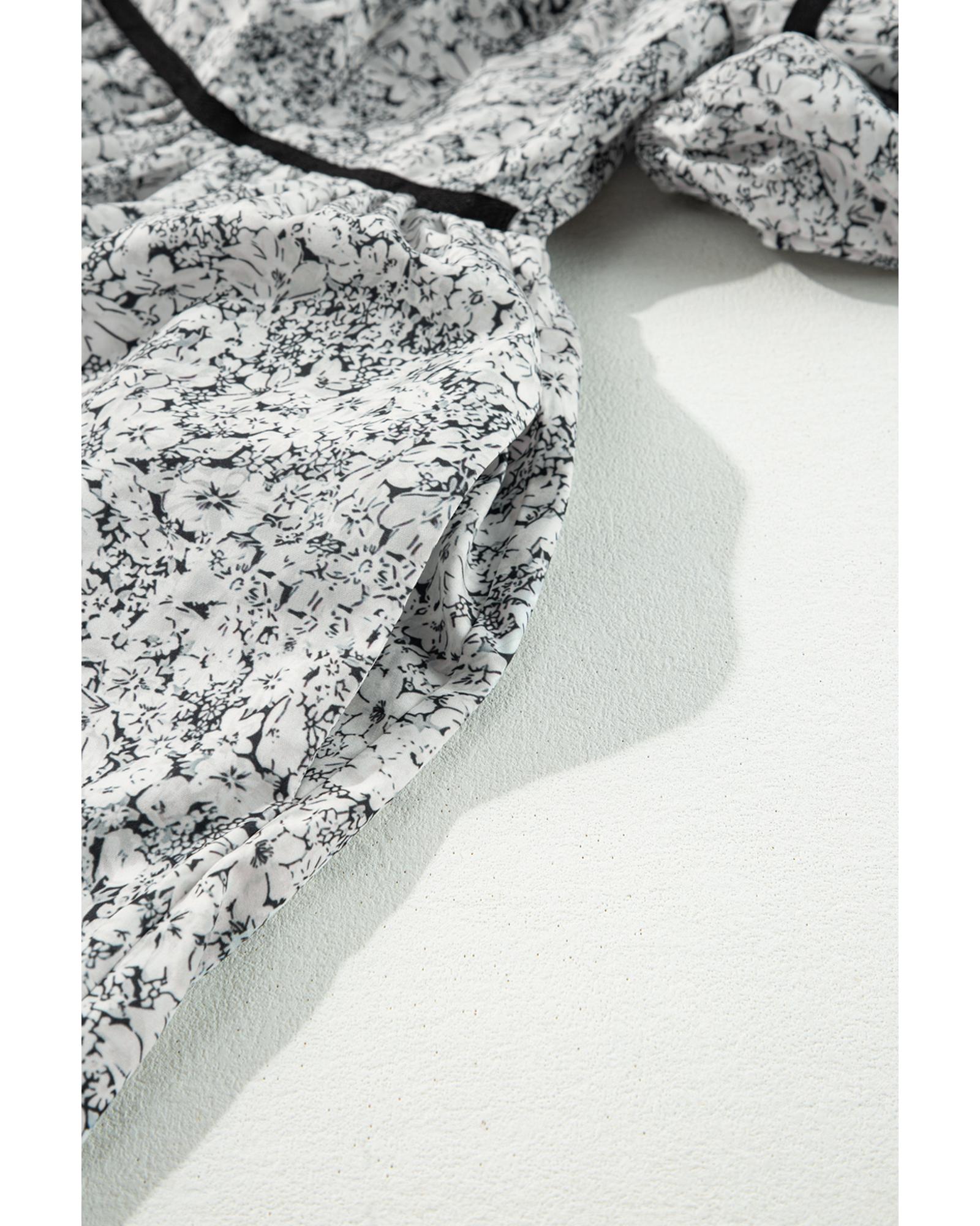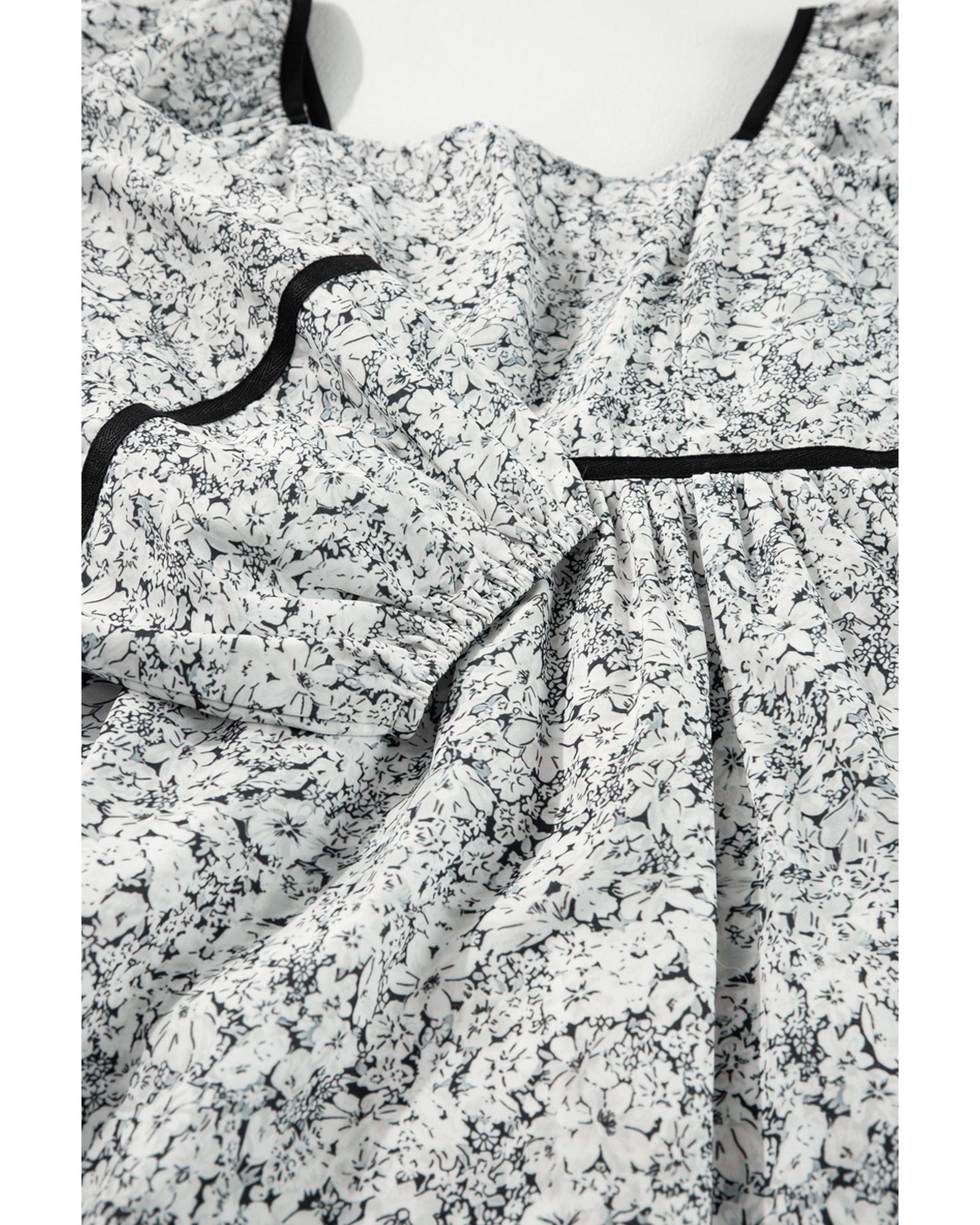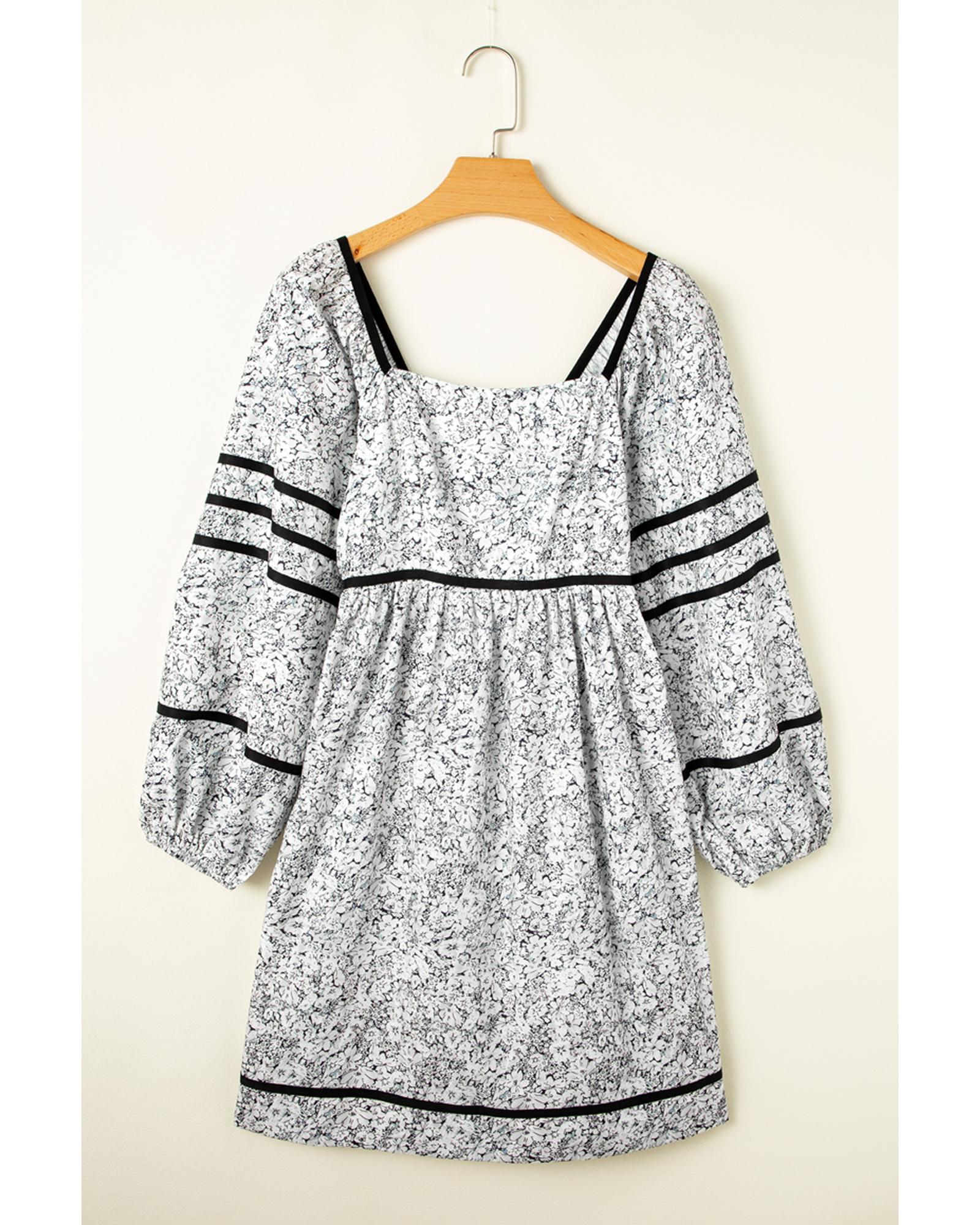 Gray Floral Print Open Back Balloon Sleeve Square Neck Mini Dress – S
