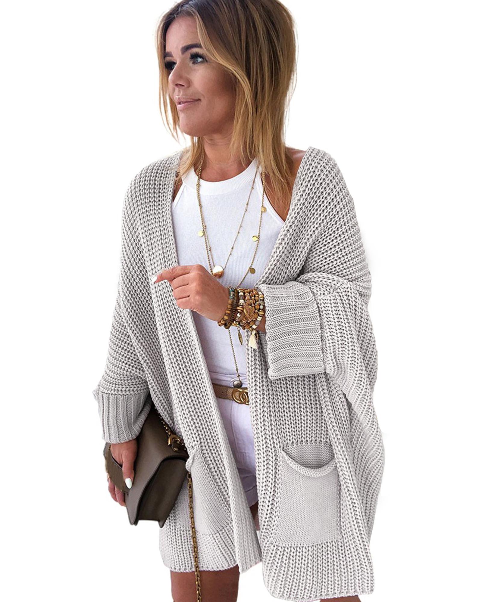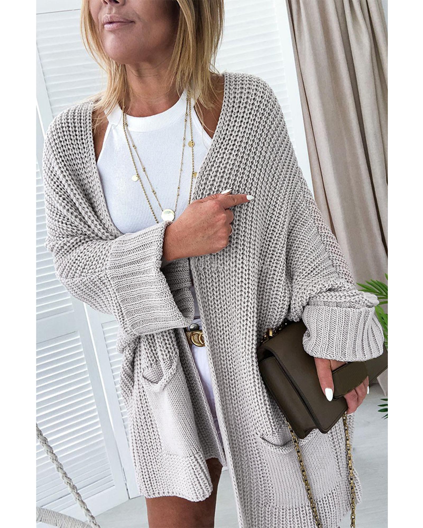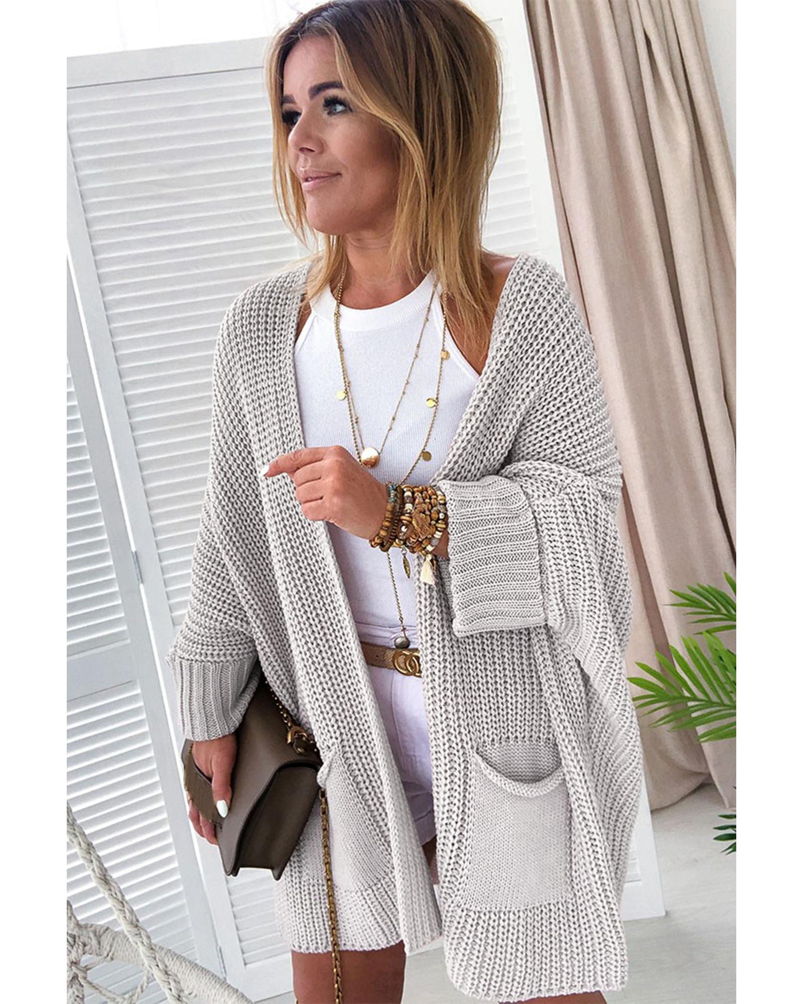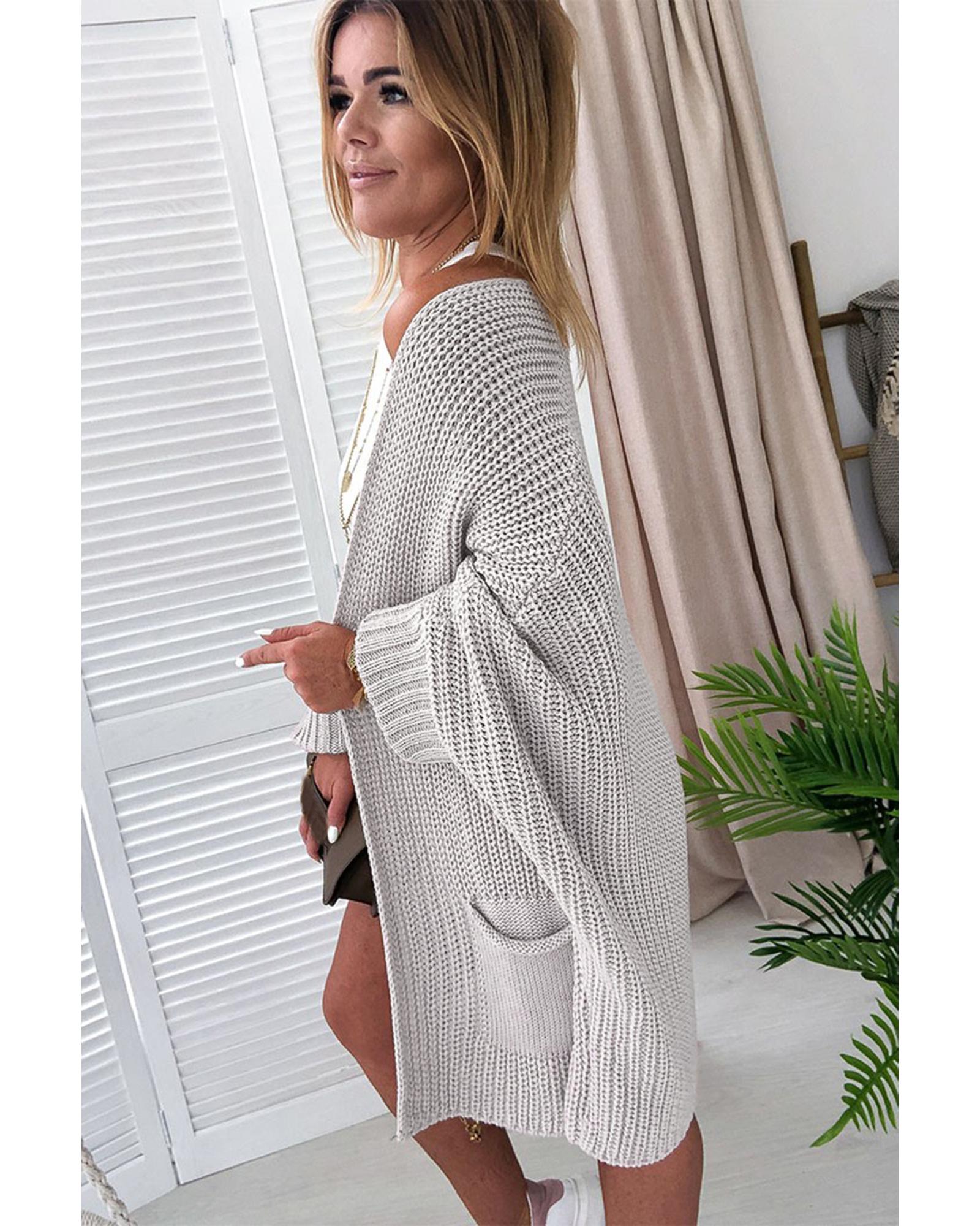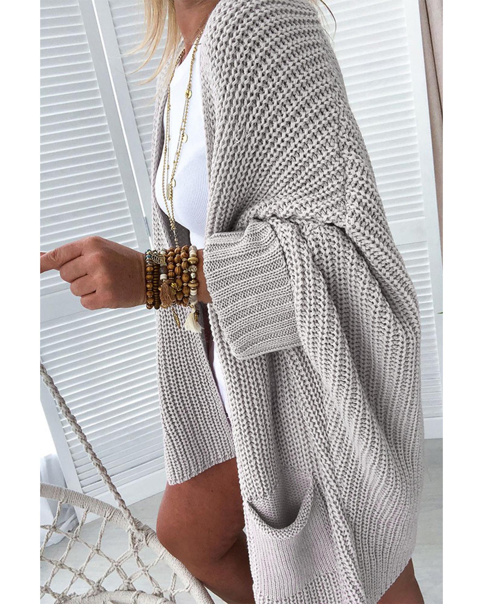 Gray Oversized Fold Over Sleeve Sweater Cardigan – L