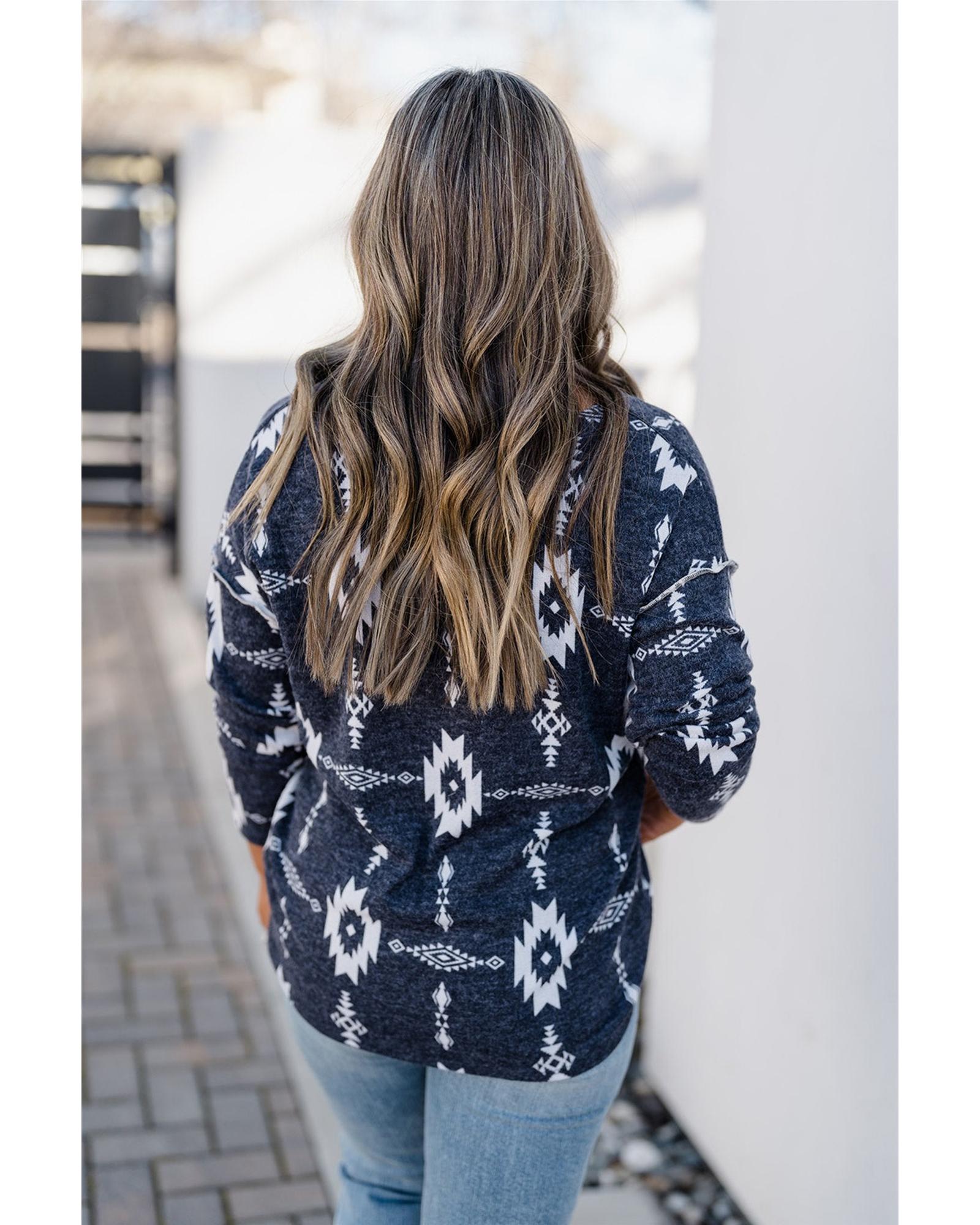 Gray Plus Size Aztec Print Exposed Seam Top – 2X