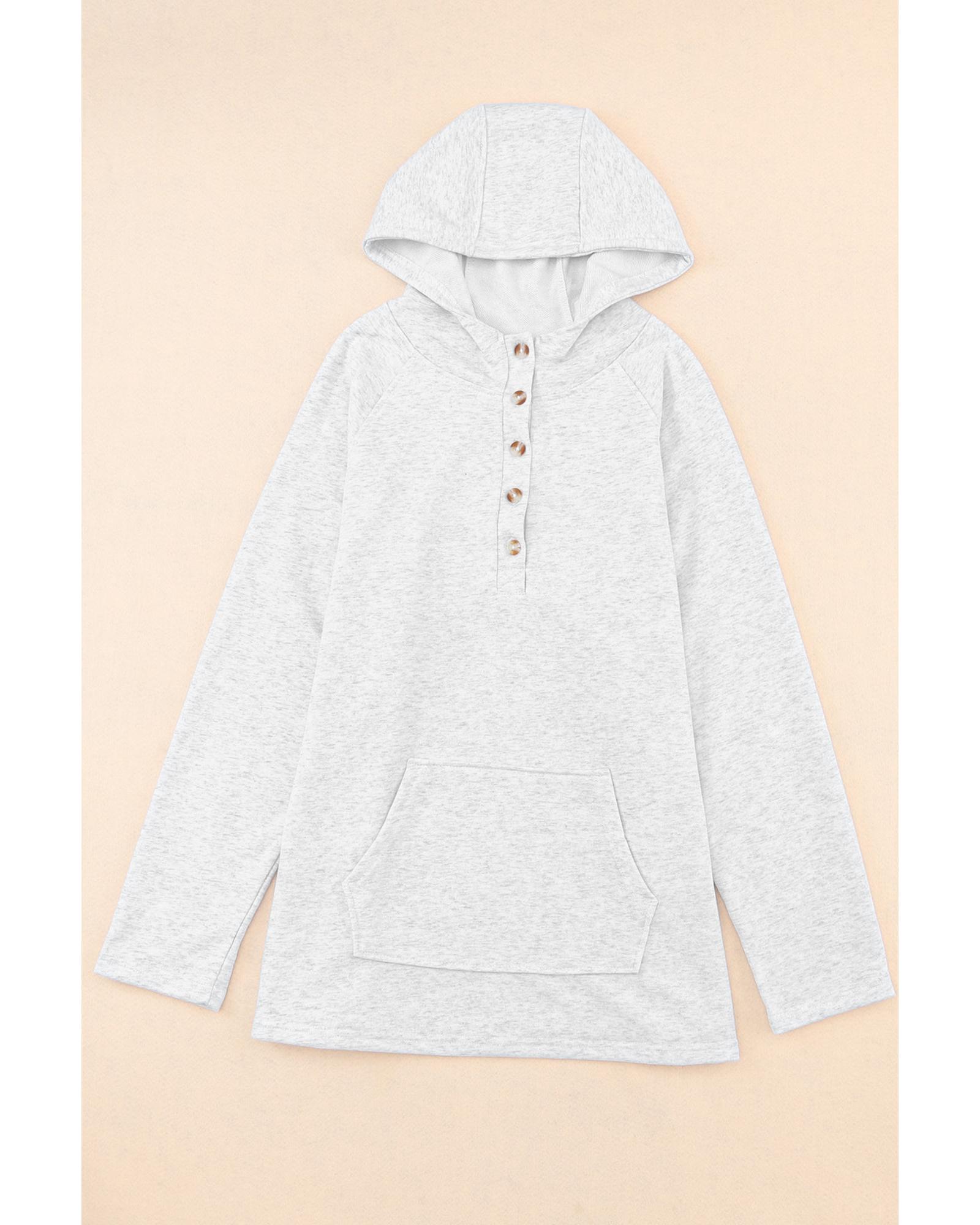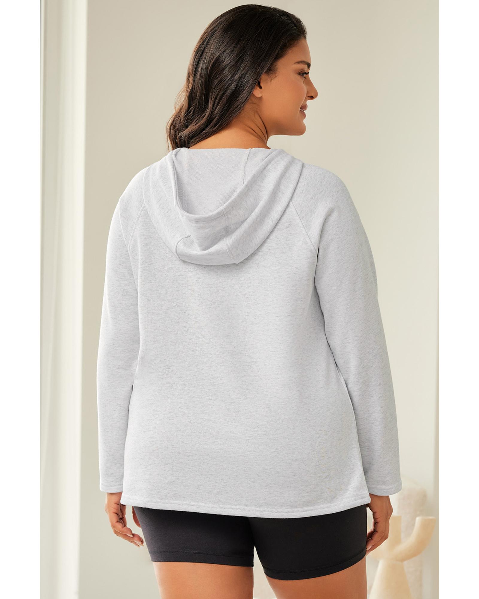 Gray Plus Size Kangaroo Pocket Henley Button Hoodie – 1X