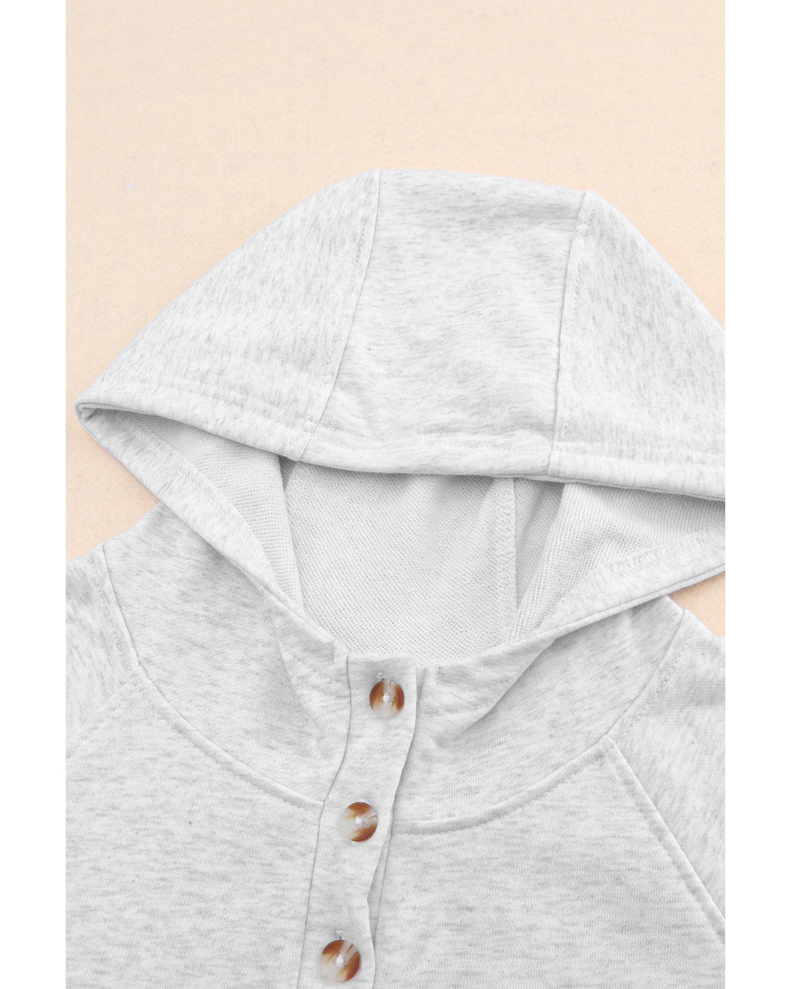 Gray Plus Size Kangaroo Pocket Henley Button Hoodie – 3X