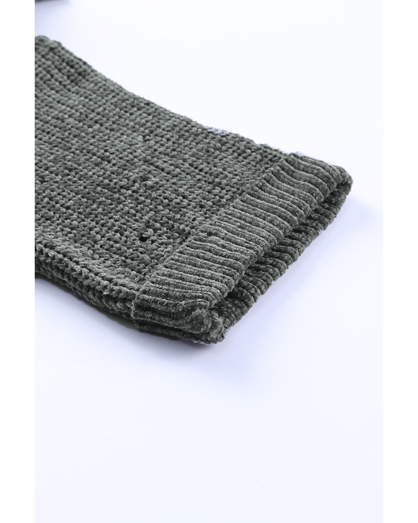 Gray Ripped Raw Hem Chunky Pullover Sweater – L