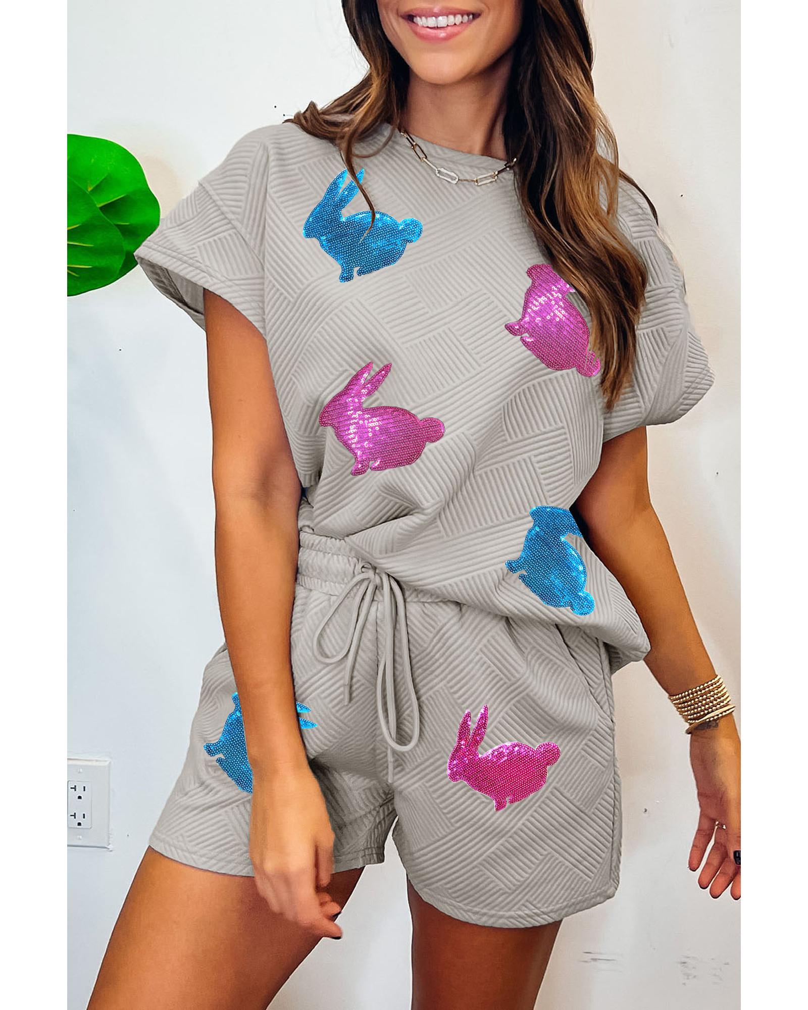 Gray Shiny Easter Bunny Patch Textured Short Outfit – XL