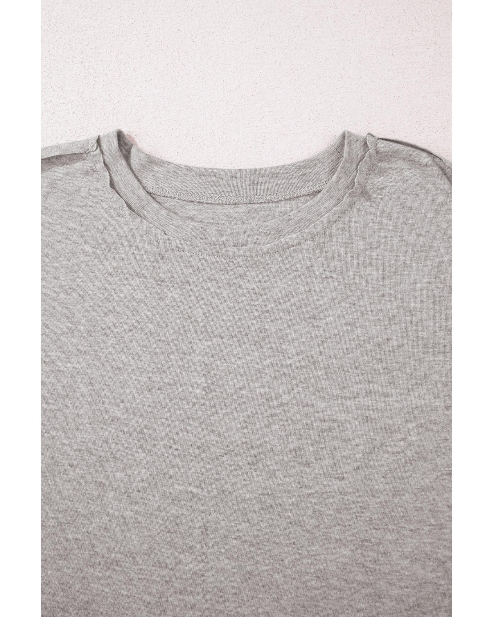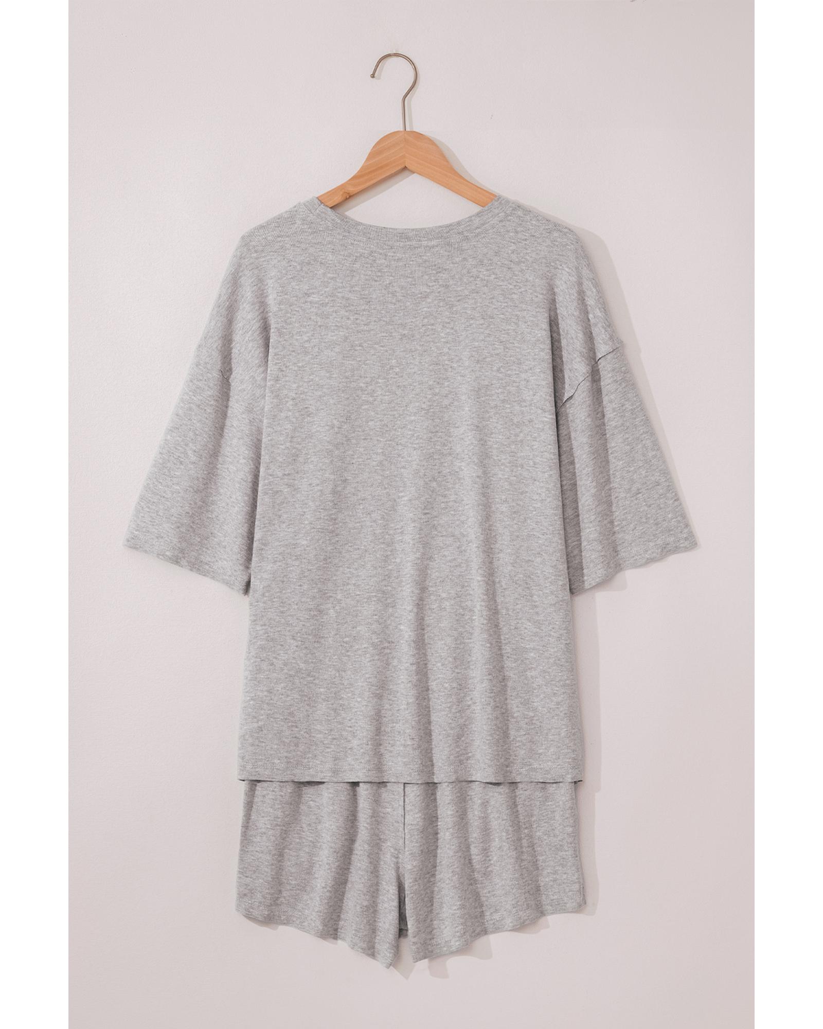 Gray Solid Color Loose Tee 2 Piece Shorts Set – S