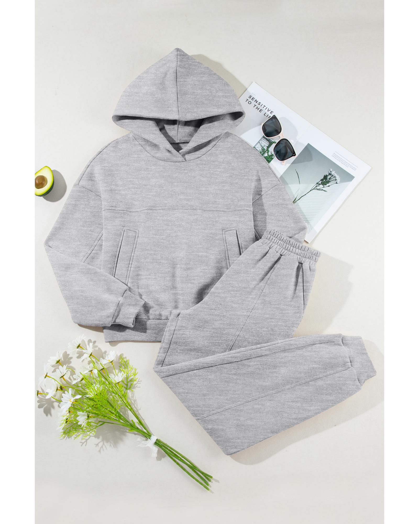- Gray Solid Exposed Seams Hoodie and Joggers Activewear Set