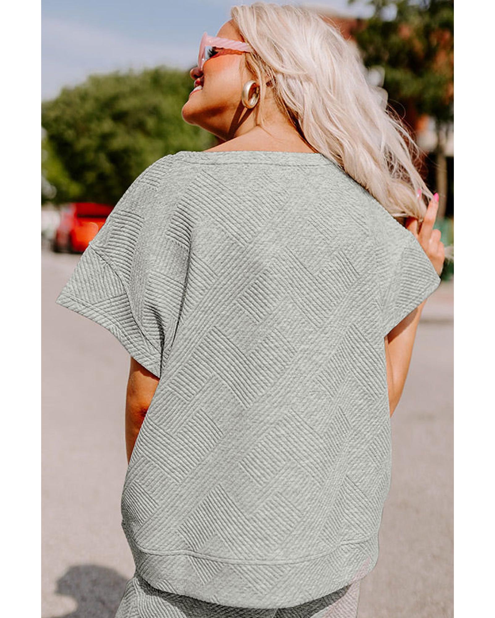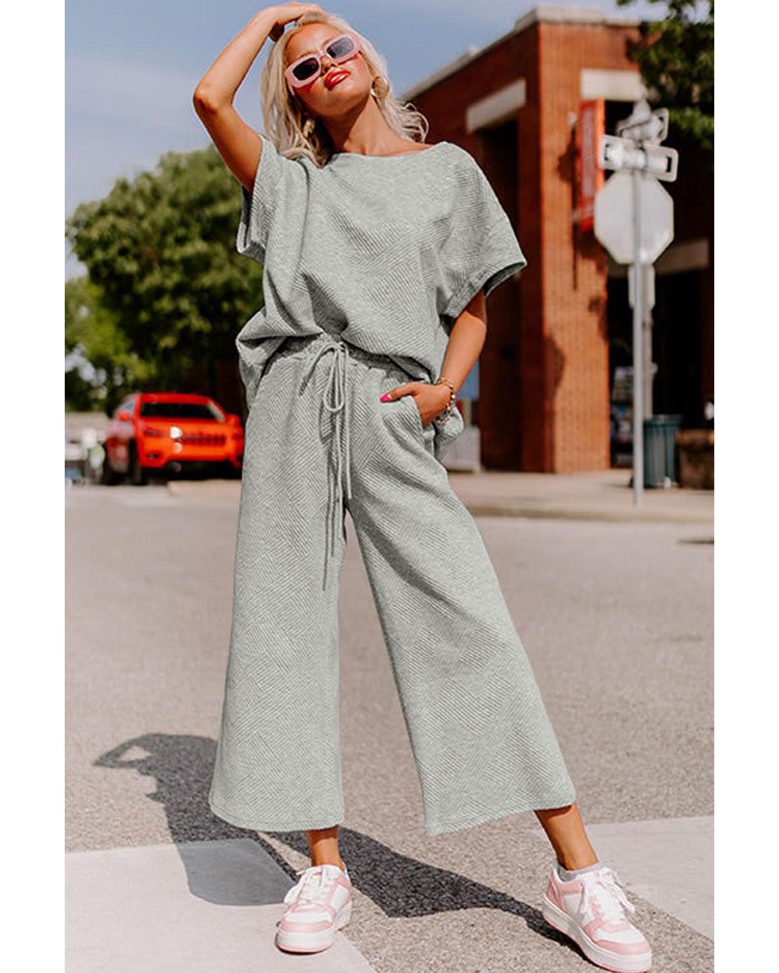 Gray Textured Loose Fit T Shirt and Drawstring Pants Set – L