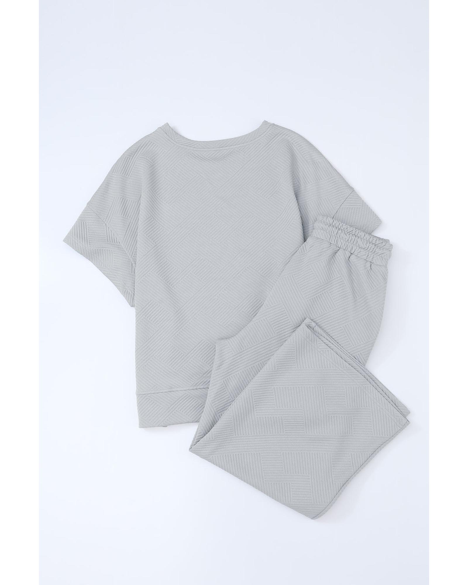 Gray Textured Loose Fit T Shirt and Drawstring Pants Set – S