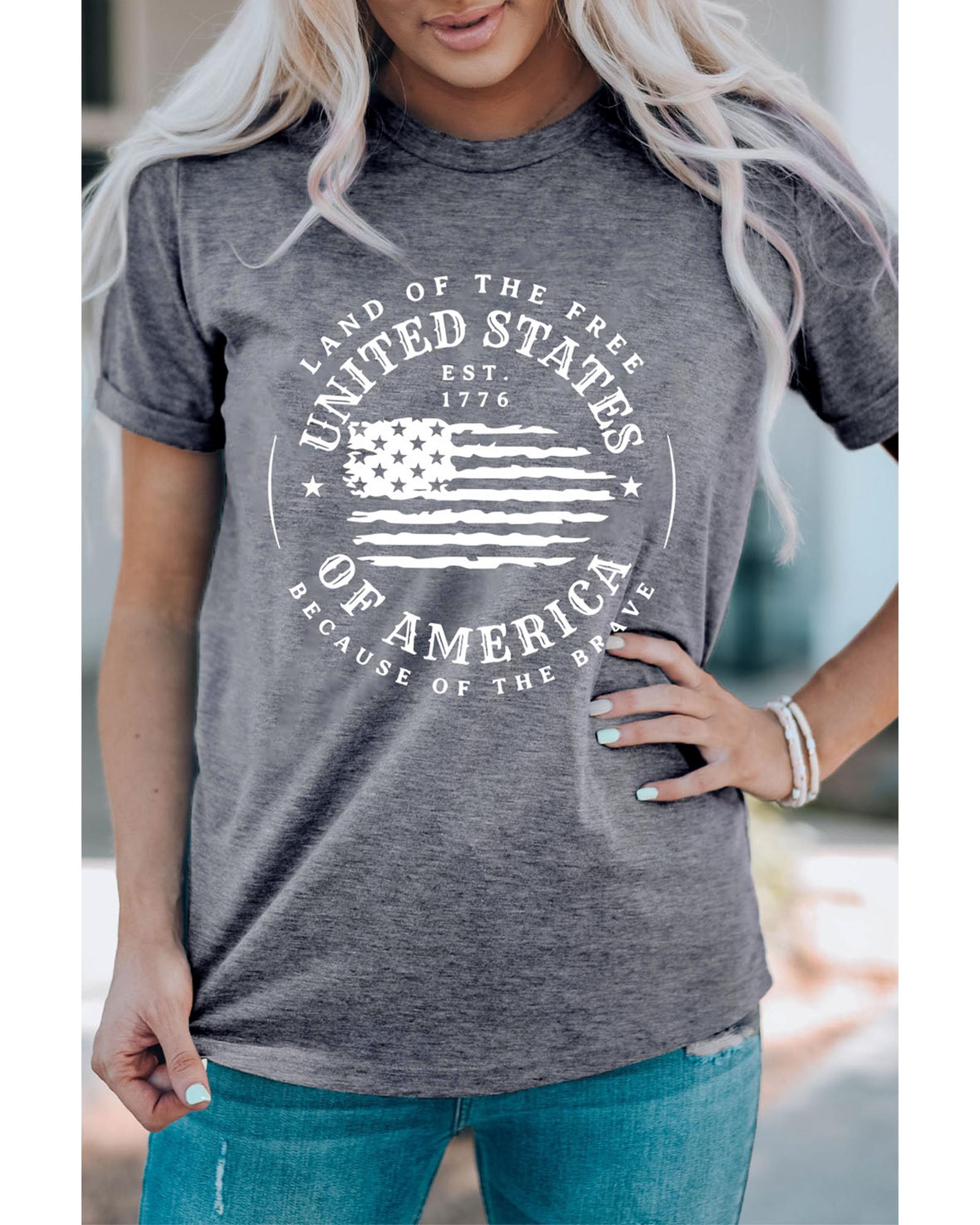 Gray United States Of America Flag Graphic Print T - Shirt Short sleeve t