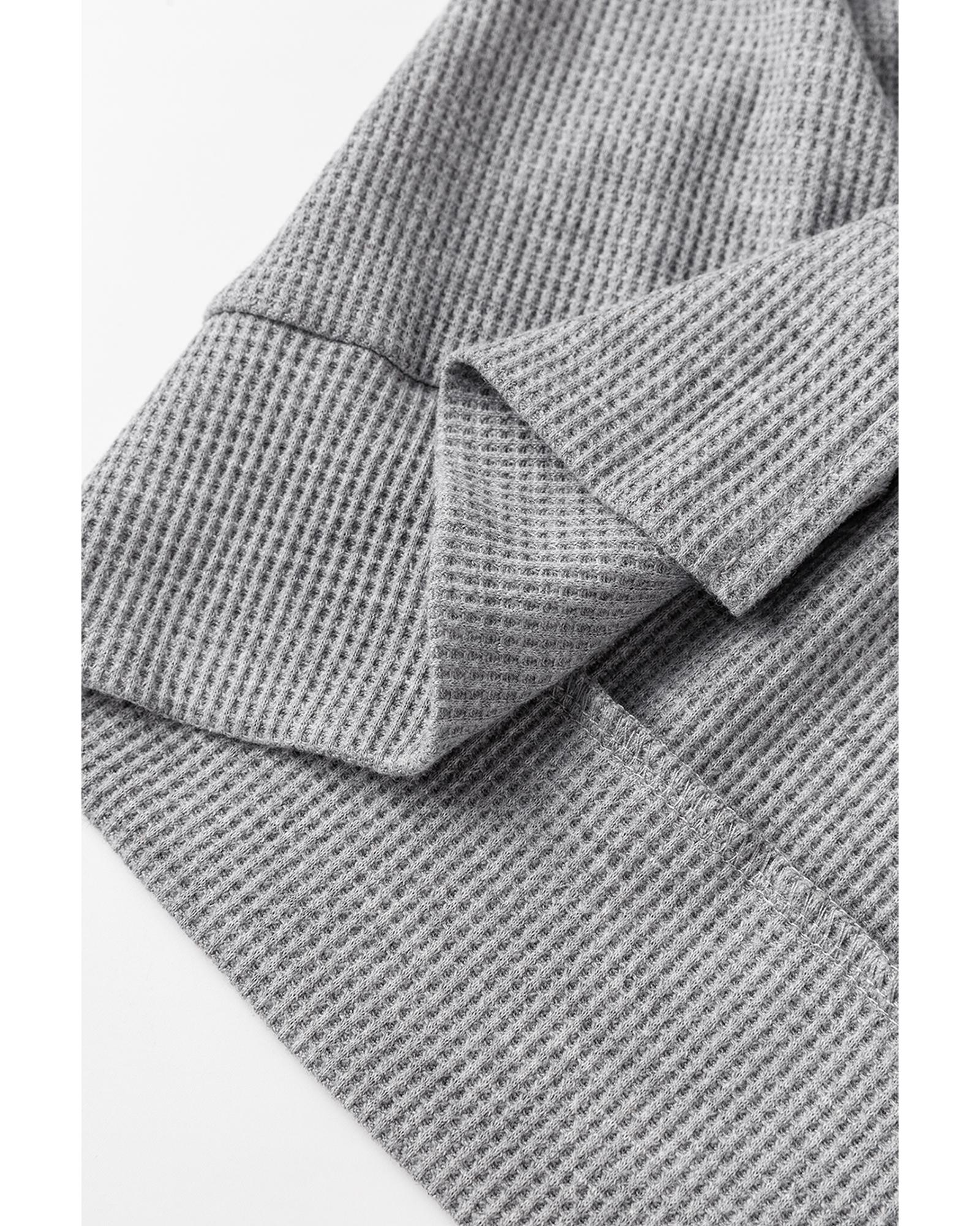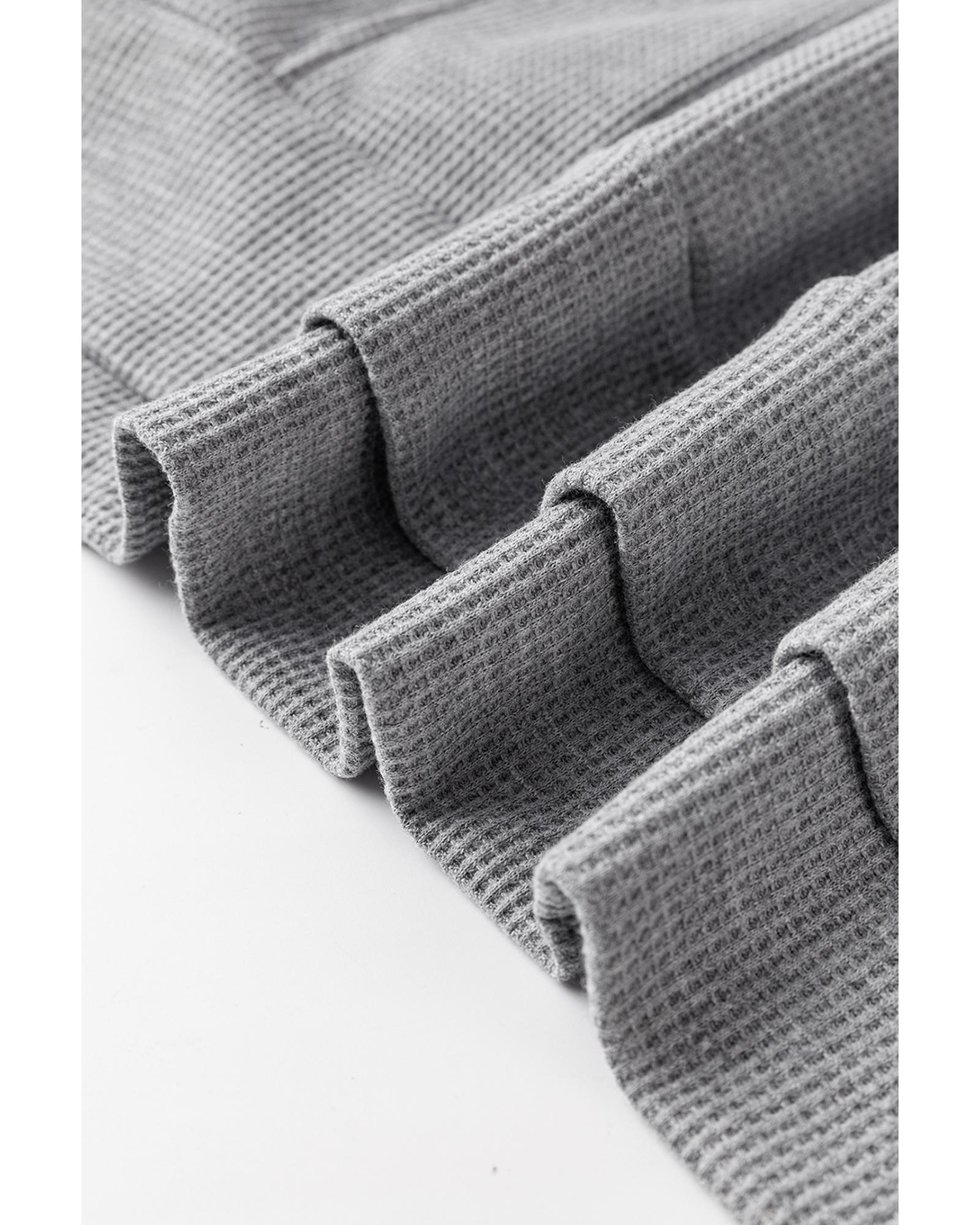 Gray Waffle Knit Fleece Lined High Low Oversized Hoodie – M
