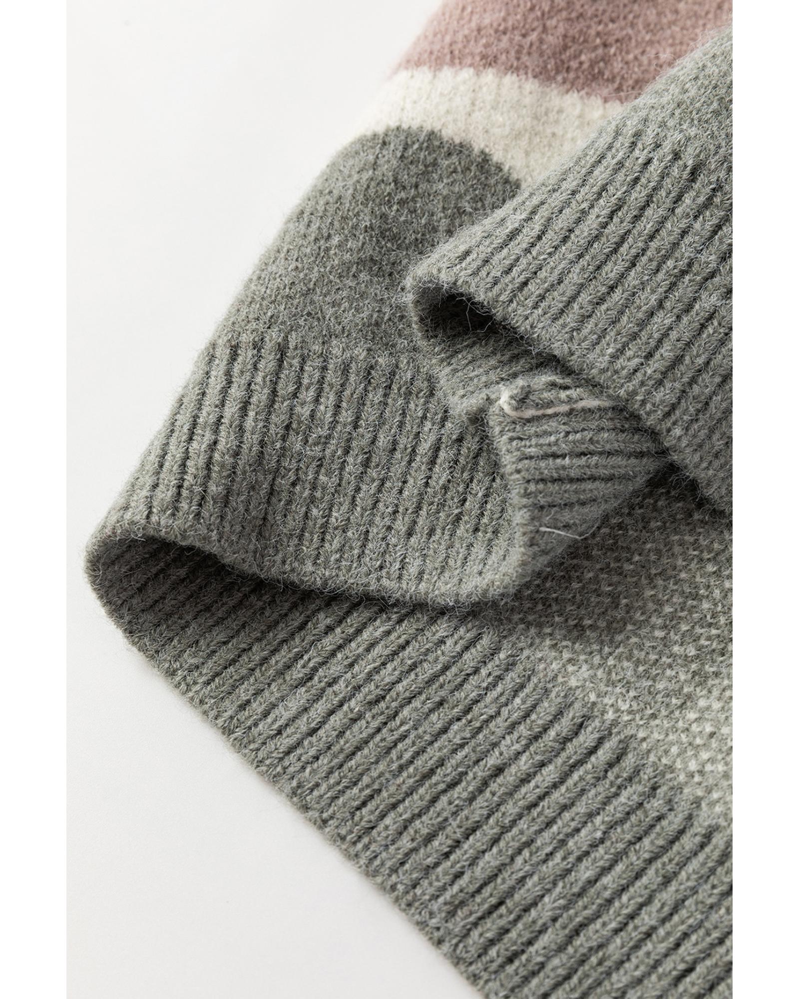 Gray Wave Striped Balloon Sleeve Drop Shoulder Sweater – L