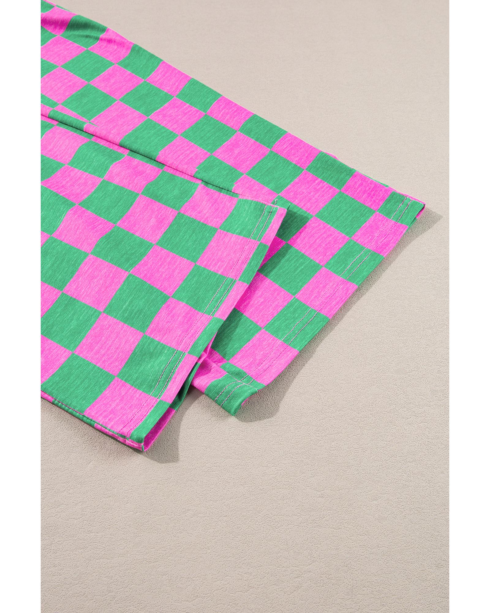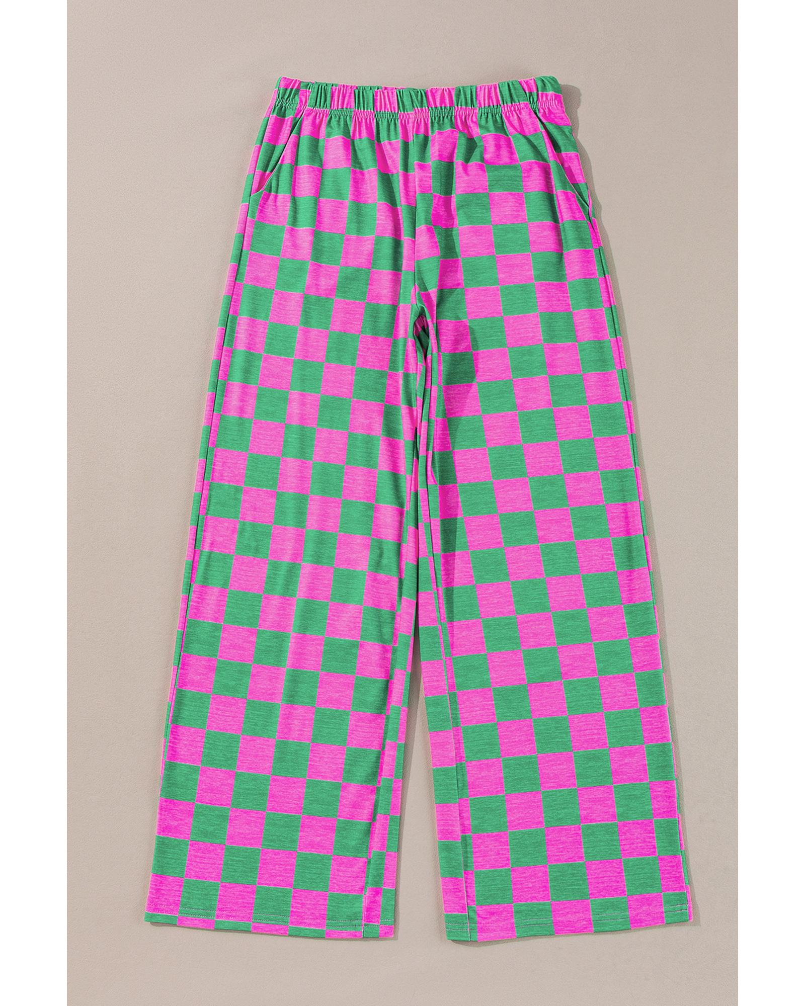 Green 2-Tone Checked Print High Waist Wide Leg Pants – XL