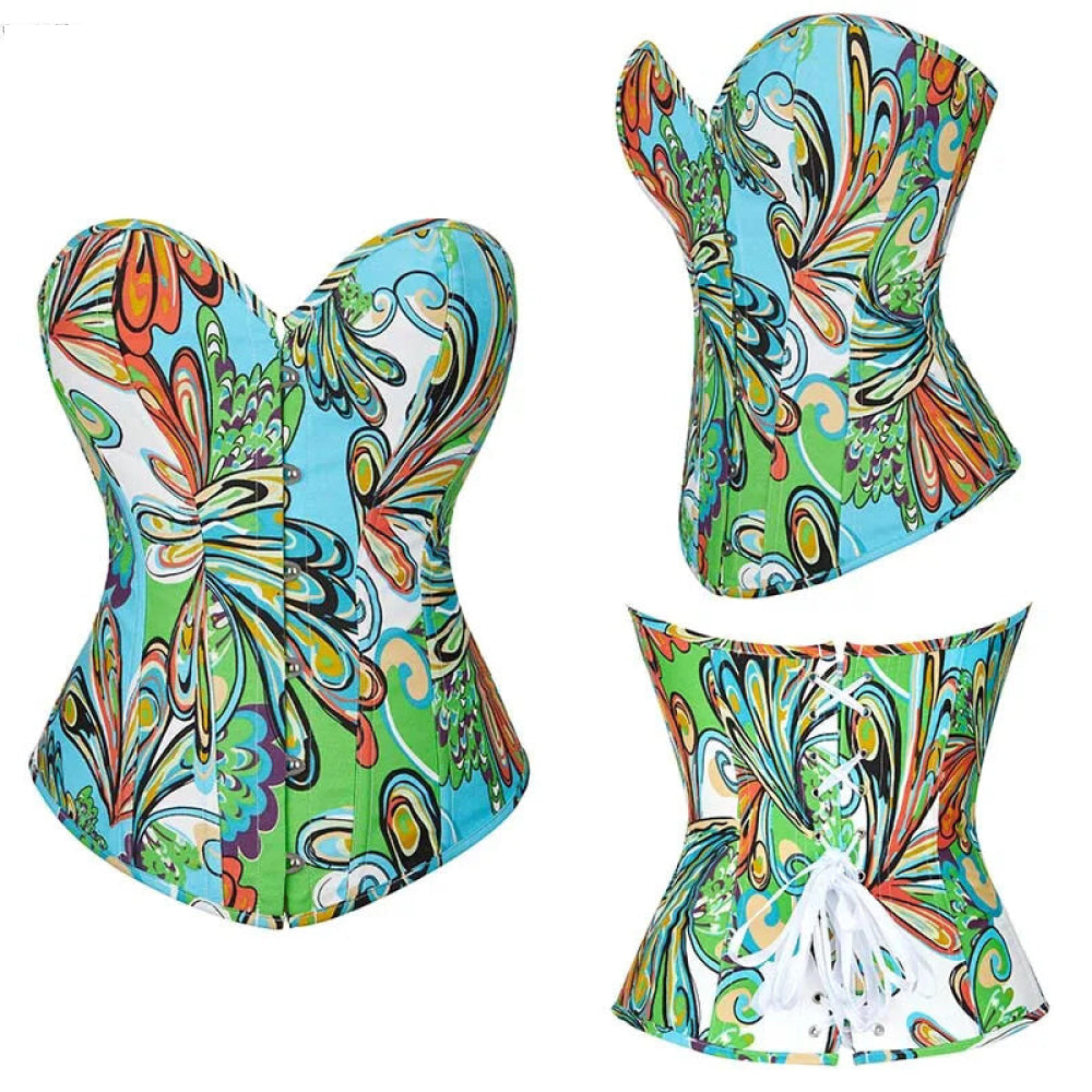 • 1 x Green Bustier Corset Top With Thong Front 6 Busk Back Lace Plus Size Alluring Lingerie For Busty Women