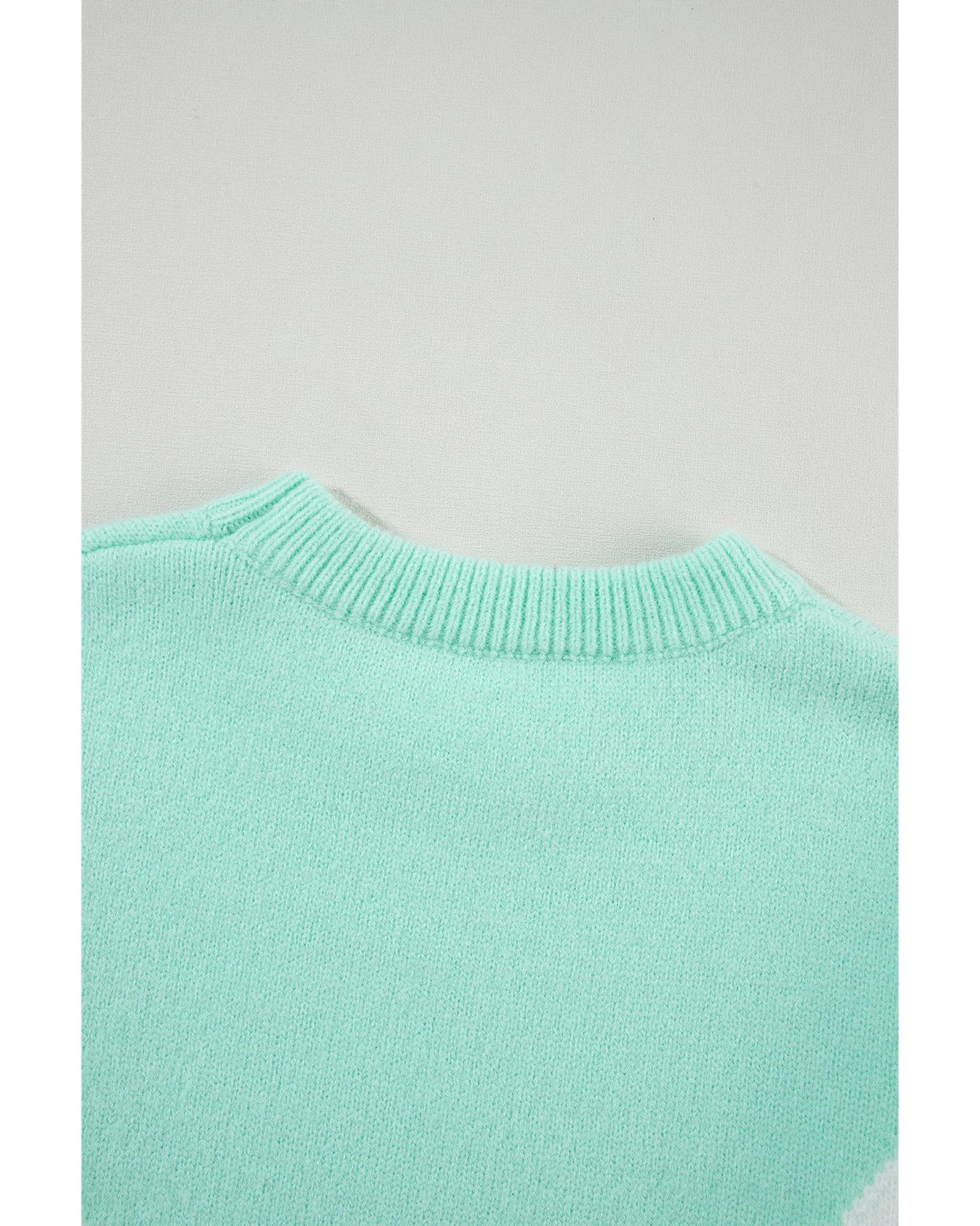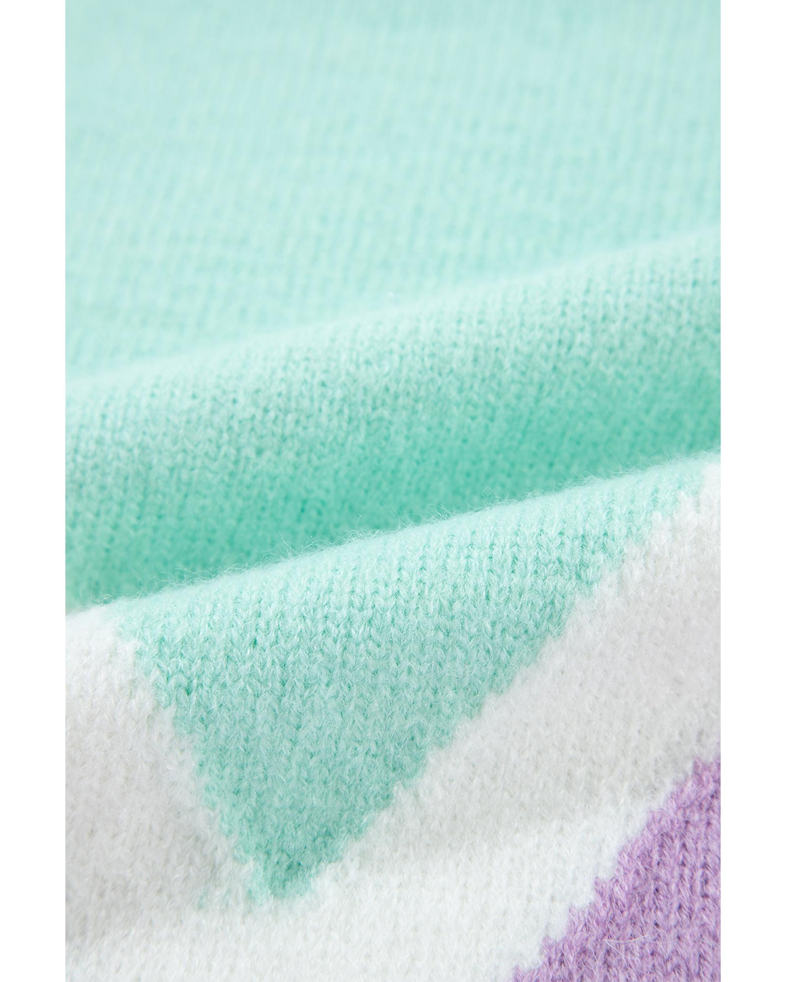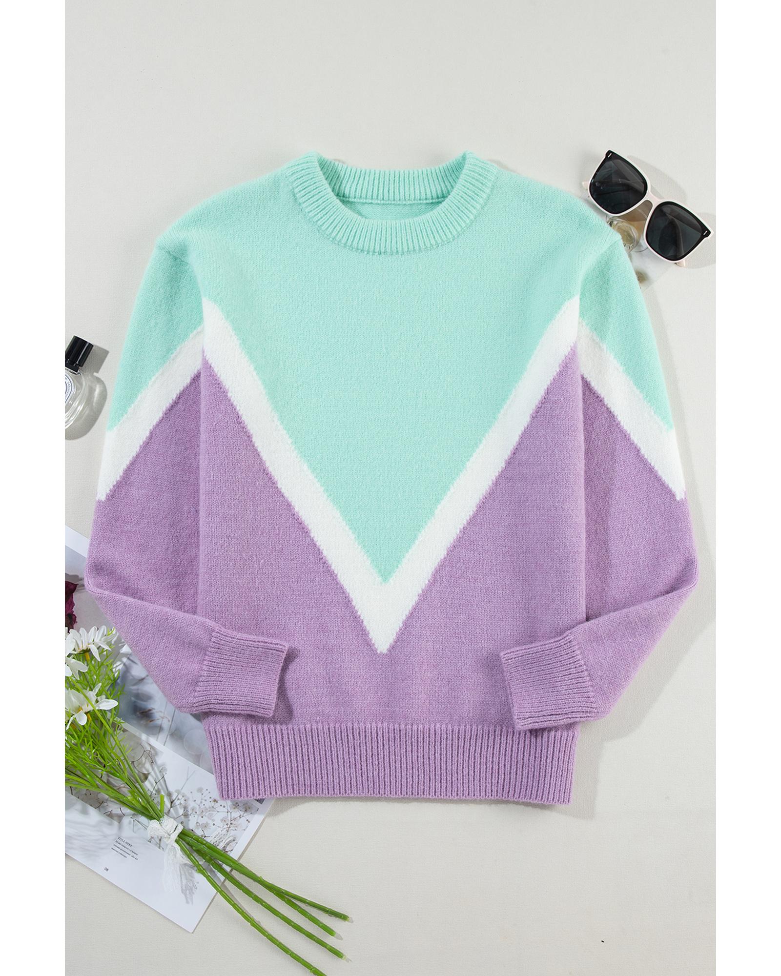 Green Chevron Colorblock Ribbed Knit Drop Shoulder Sweater – M