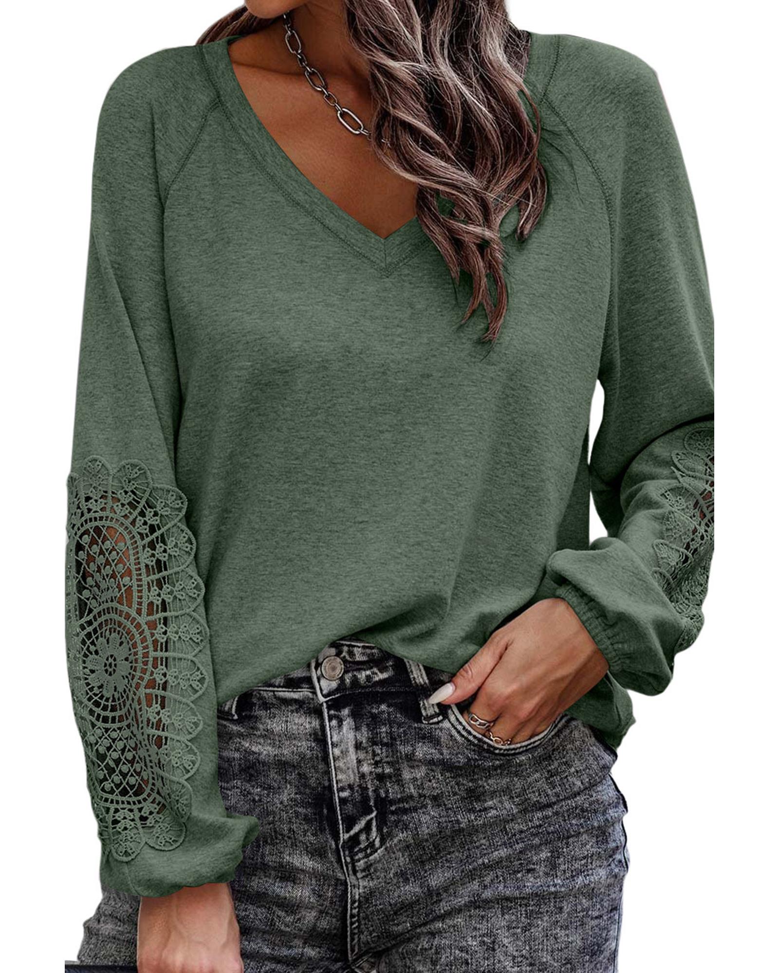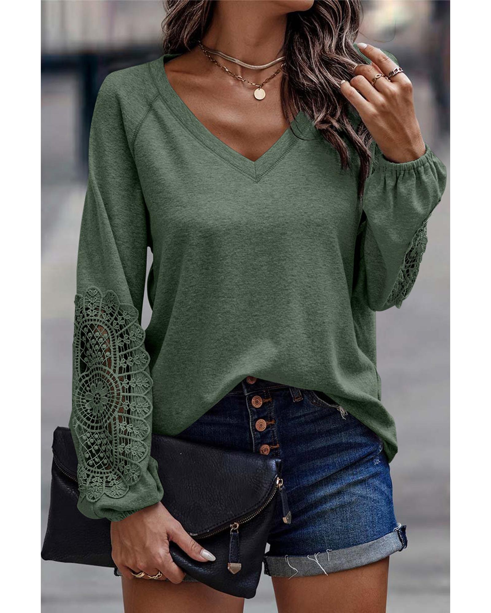 Green Crochet Lace Patch Raglan Sleeve Top – S
