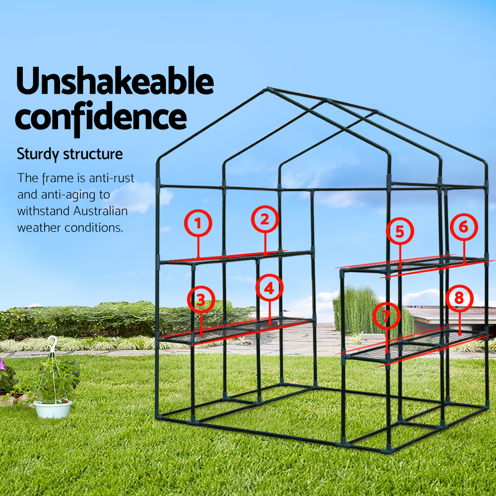 Green Fingers Greenhouse 1.4×1.55x2M Walk in Green House Tunnel Plant Garden Shed 8 Shelves