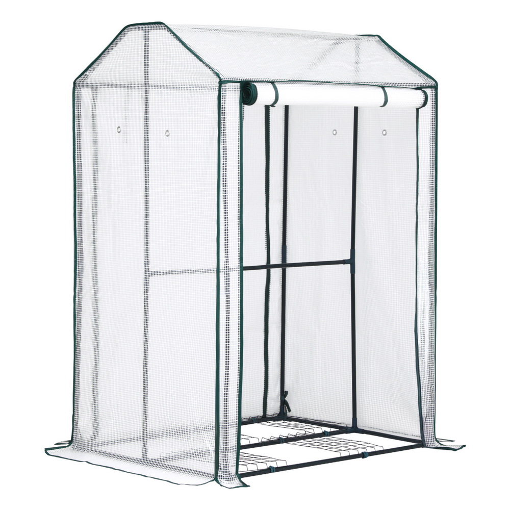 This weather-resistant greenhouse provides year-round protection for healthy plant growth. Its tear-resistant PE cover features a convenient zipper roll-up door for easy access.