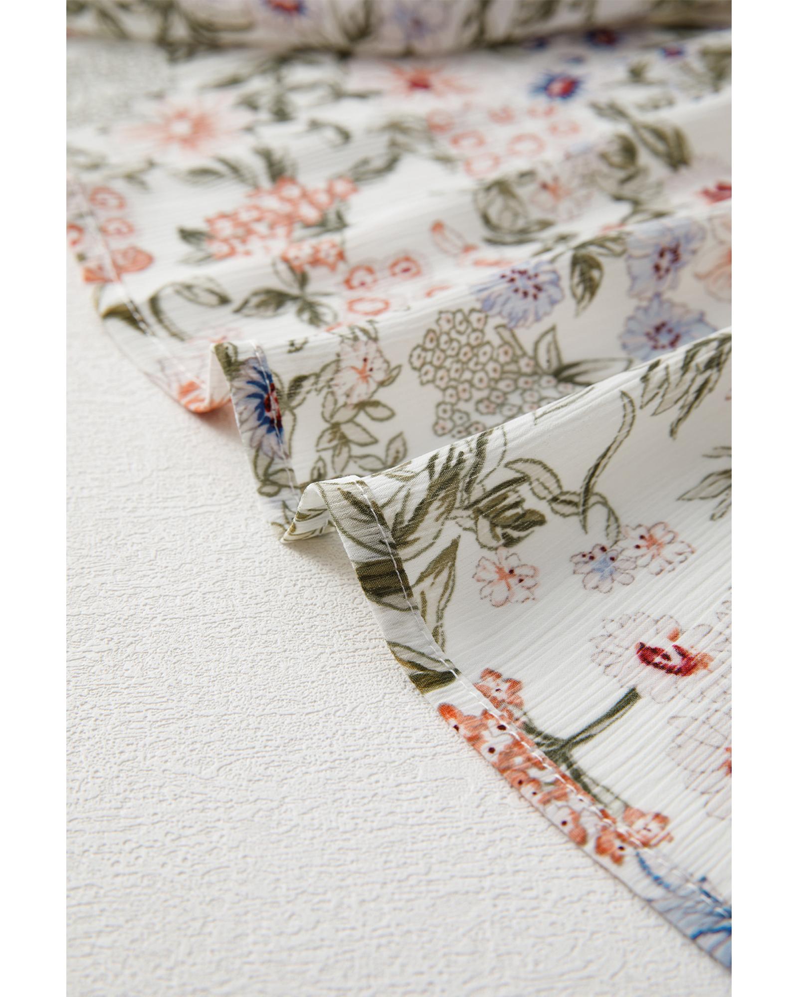 Green Floral Print Tiered Frilled Shirred Mock Neck Mini Dress – L