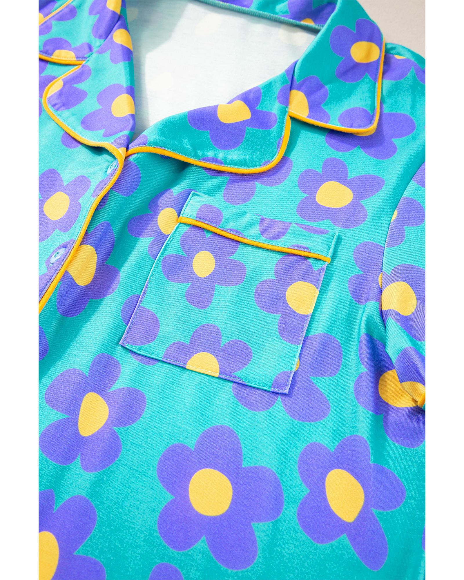 - Green flower print short sleeve pajama set