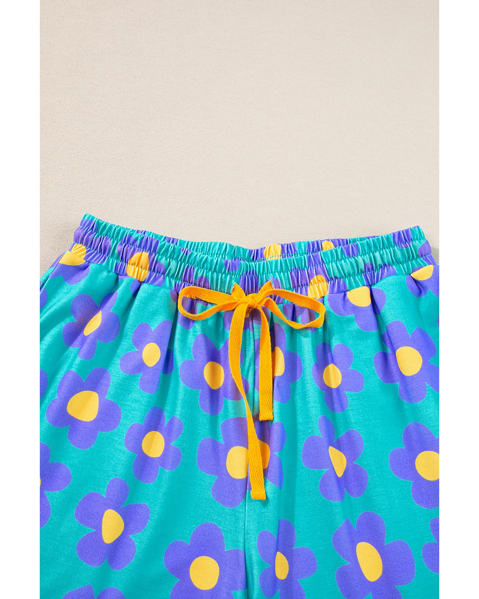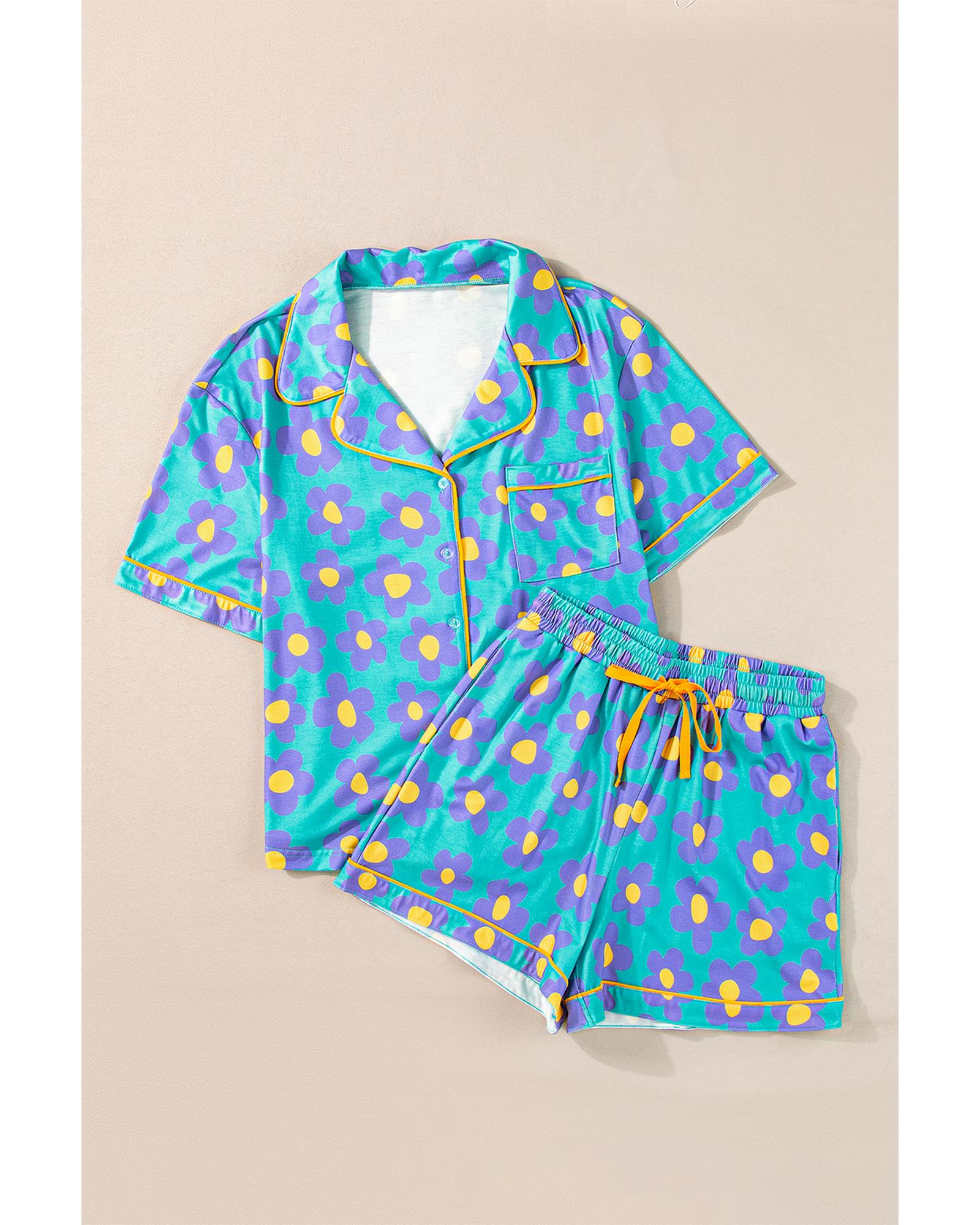 - Green flower print short sleeve pajama set