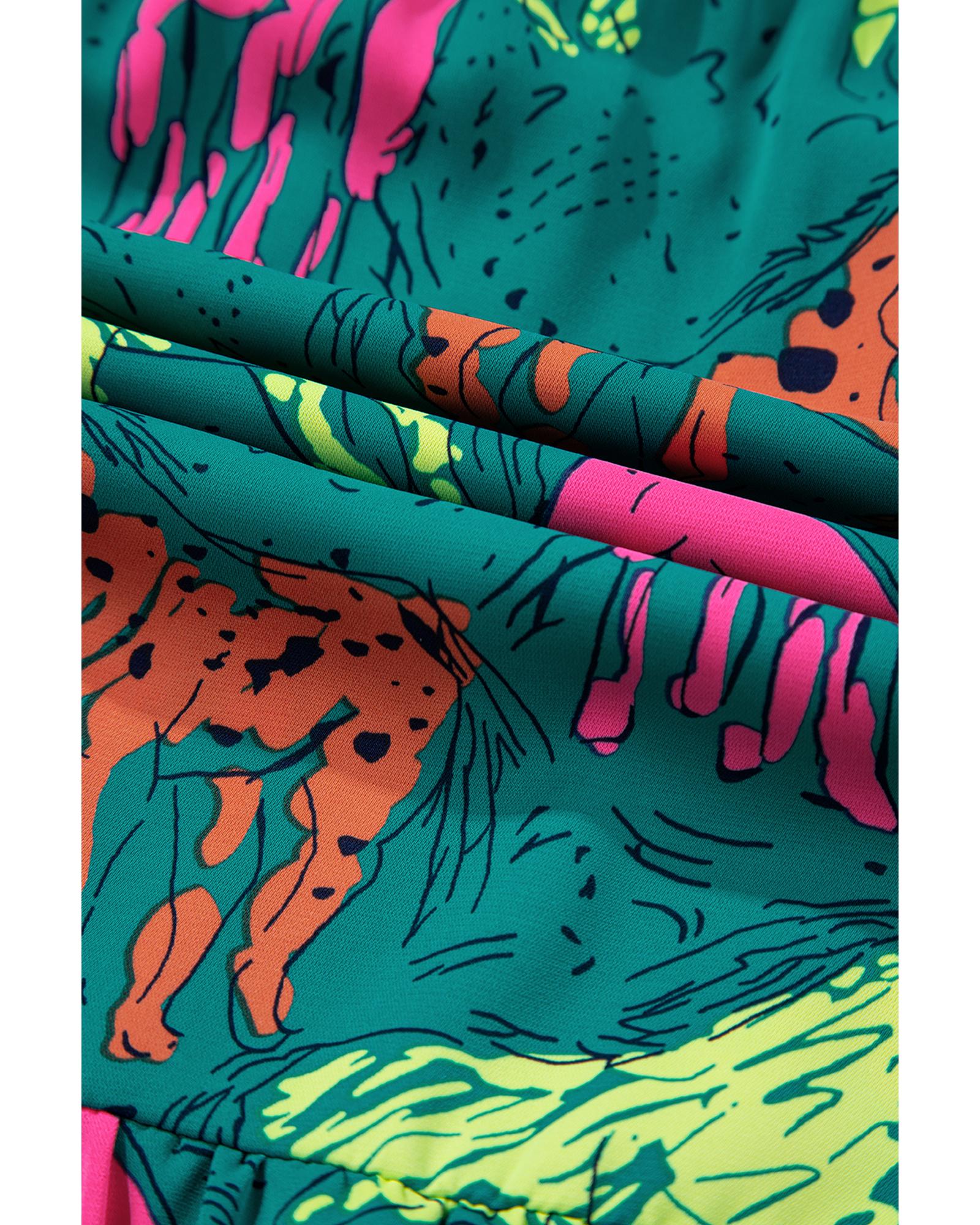 Green Horse Printed Long Sleeve Collared Buttoned Plus Size Midi Dress - 4X