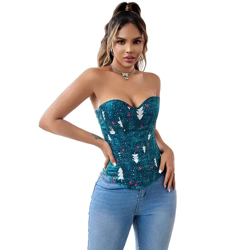• 1 x Green Lace-Up Corset Top Fish Bone Support Plus Size Xs-Xl Zip Lace Closure