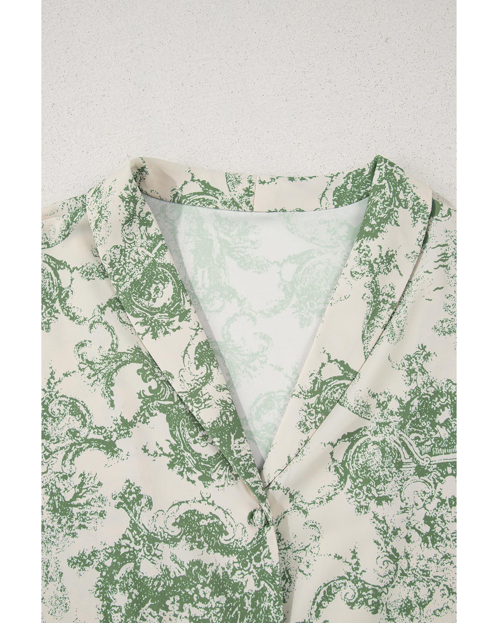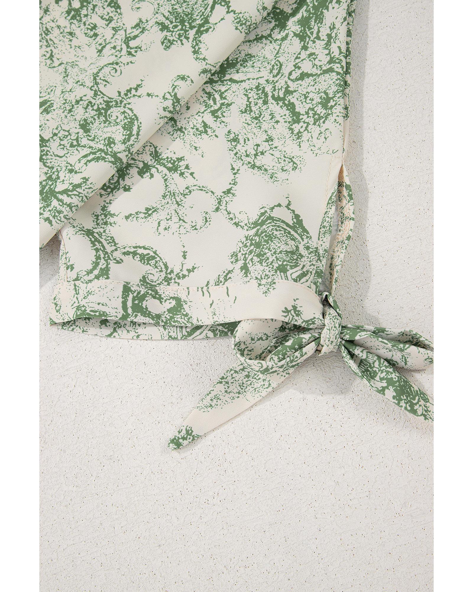 Green Landscape Print Tied 3/4 Sleeve Shirt with Sash – XL