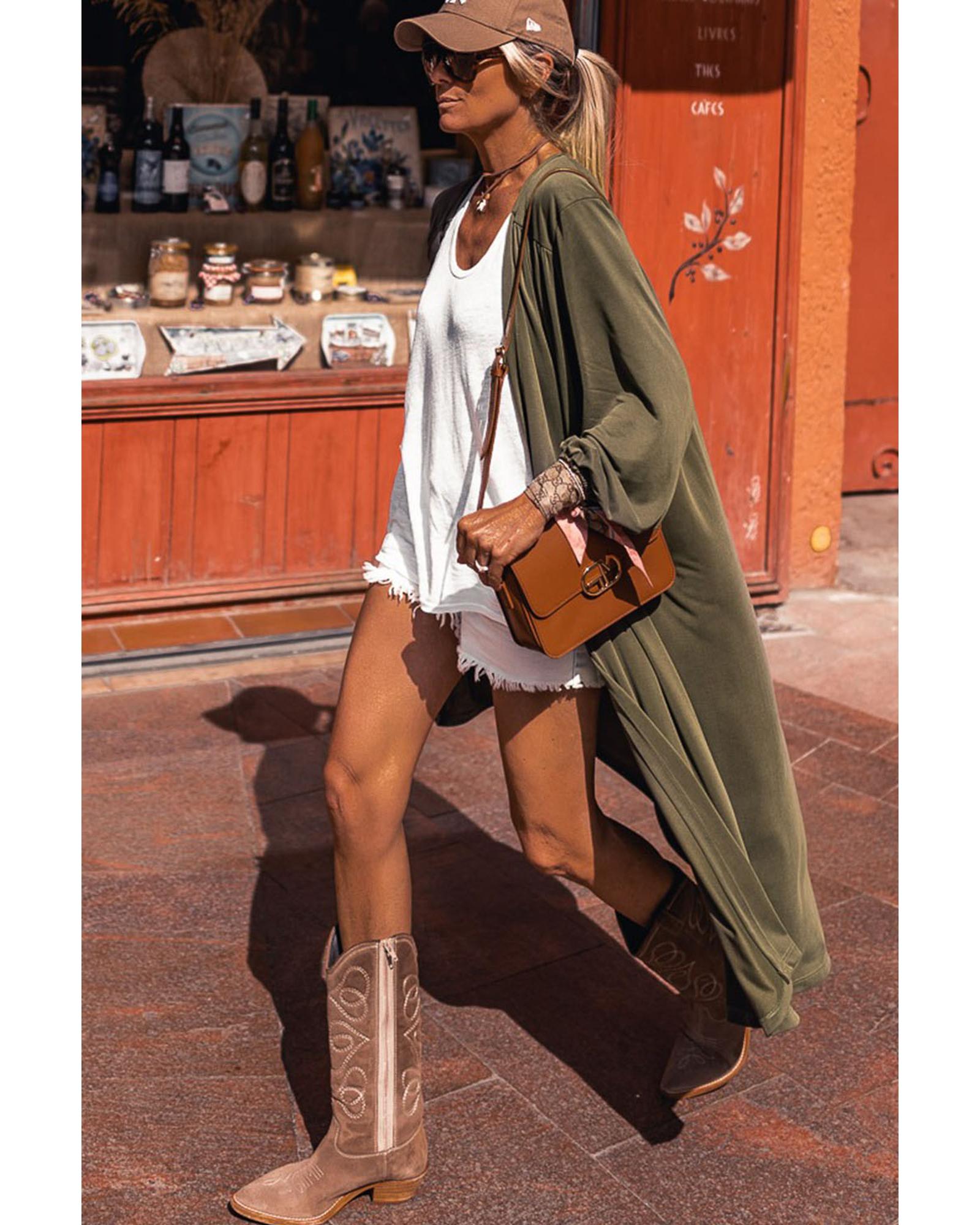 Green Lightweight Long Sleeve Open Front Duster Cardigan – XL
